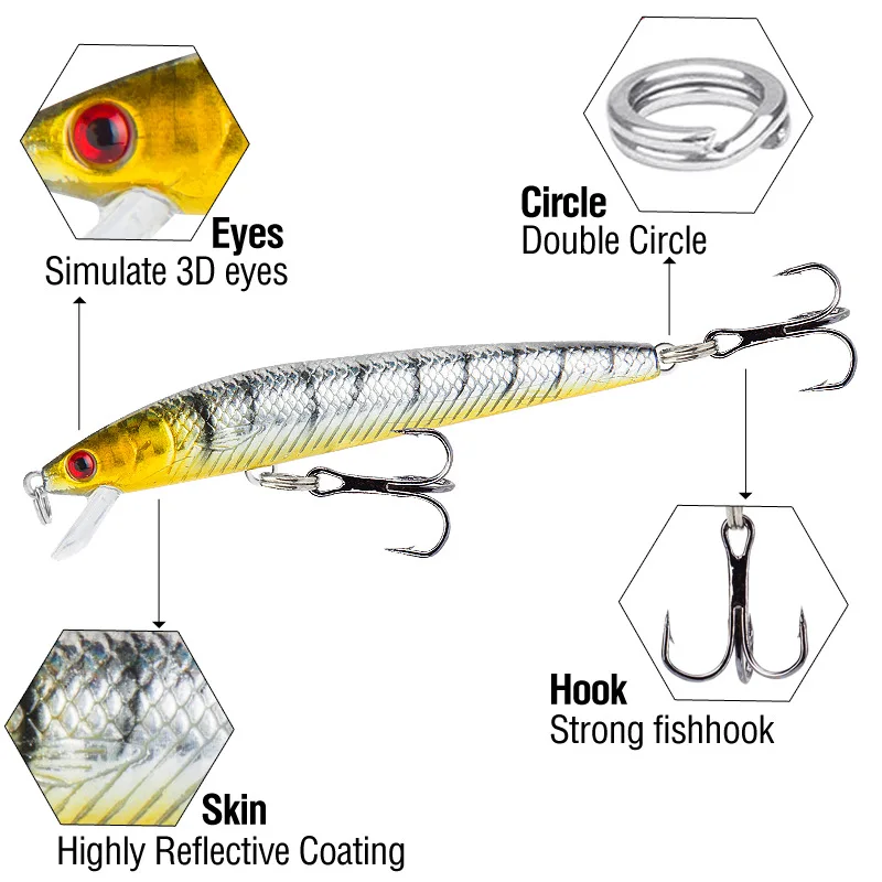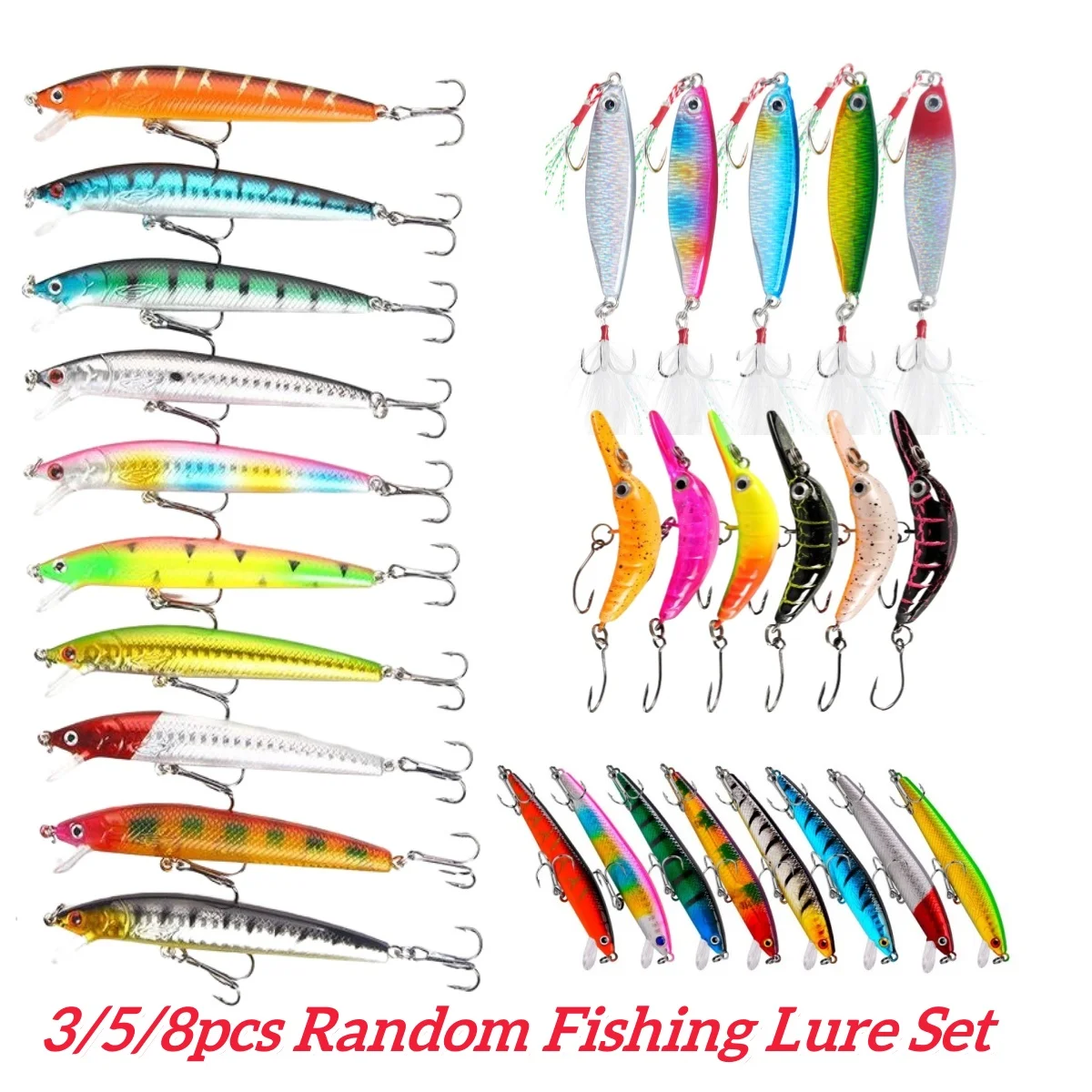 Juego de Señuelos de Pesca aleatorios, cebo de pez Jigging de pececillo de alta calidad, ojos 3D de imitación artificiales, juego de Señuelos de Pesca al aire libre, 3/5/8 Uds.