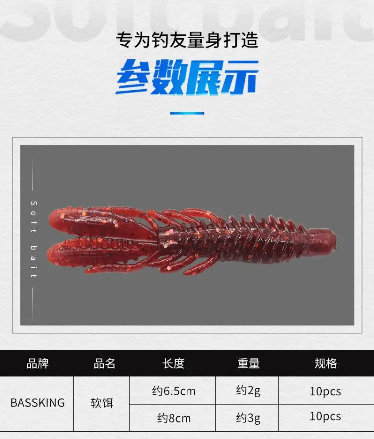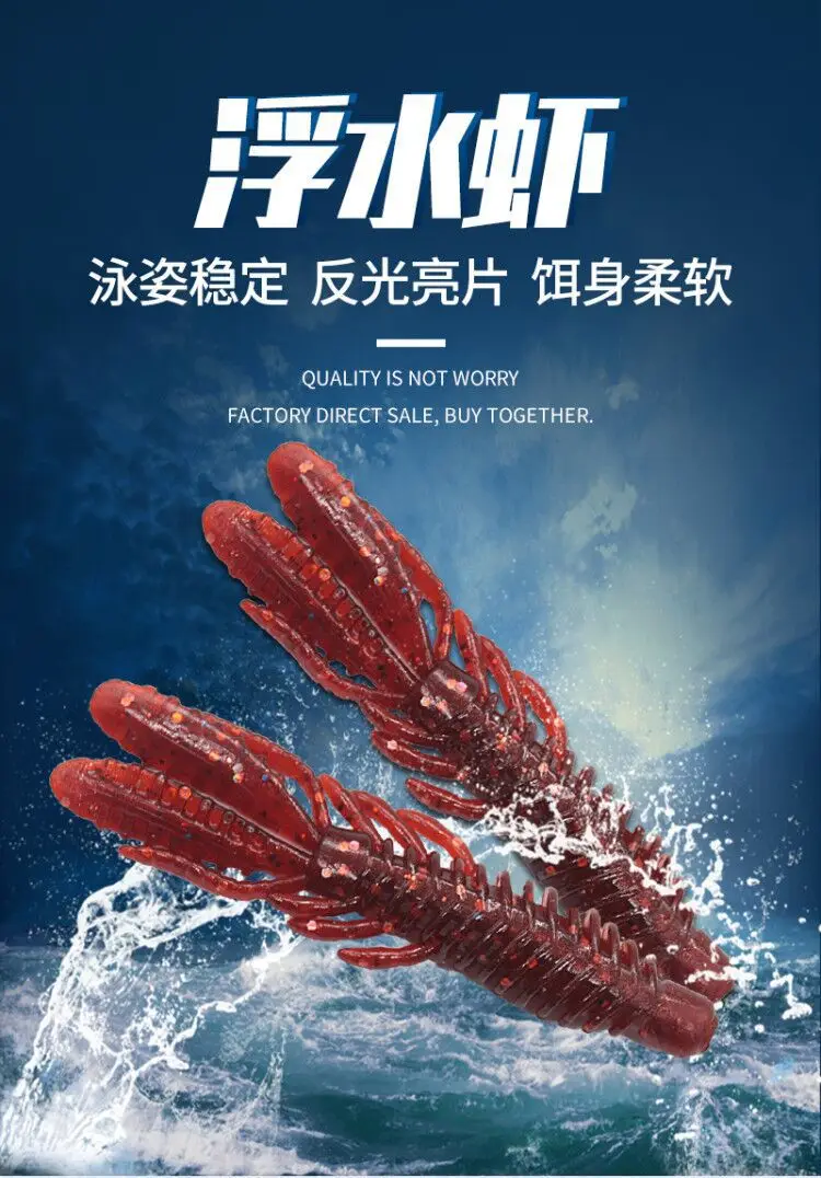 Juego de Señuelos de Pesca biónicos, cebo suave de agua flotante, tipo Camarón, 10 piezas, 6,5 cm/2g, 8cm/3g