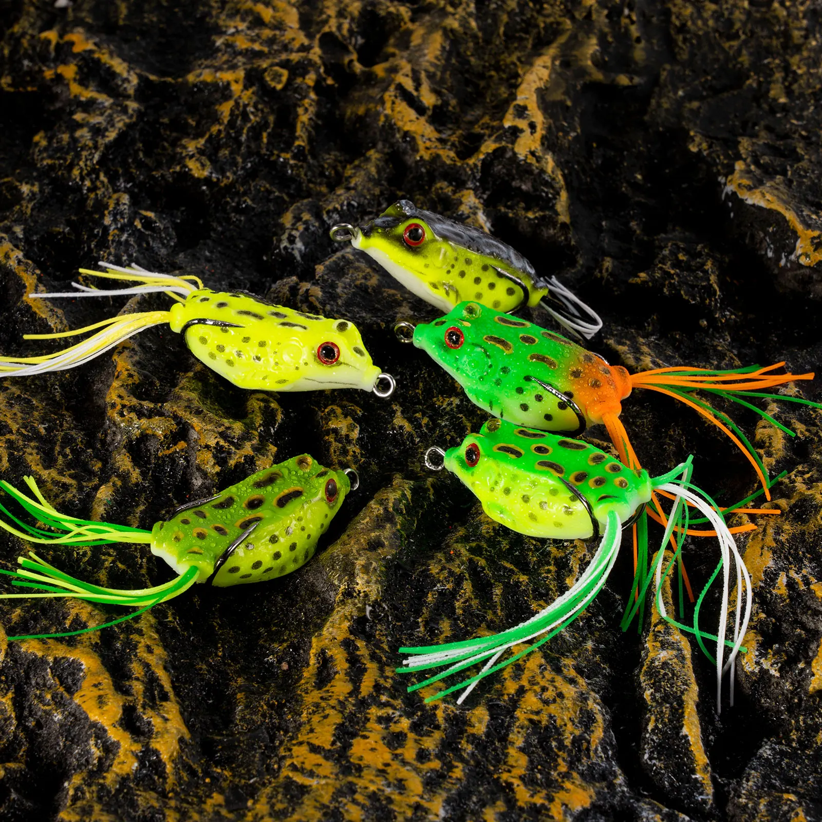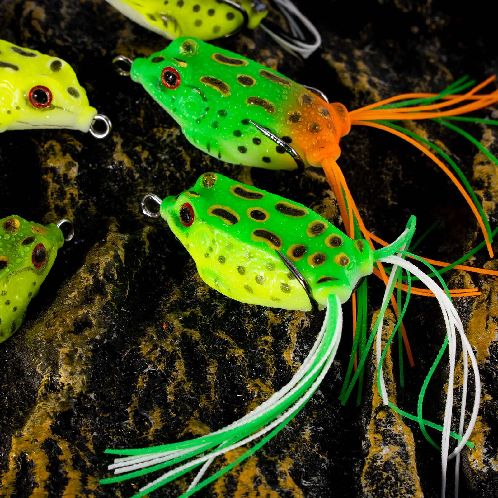 5. Diseñado con una forma realista, nuestro señuelo de rana imita la estructura natural del cuerpo y los movimientos de una rana real. Sus detalles precisos lo convierten en una comida irresistible para los peces, ya que lo confunden con su presa natural.