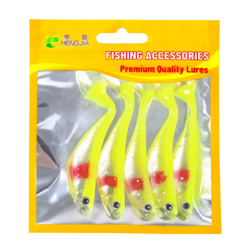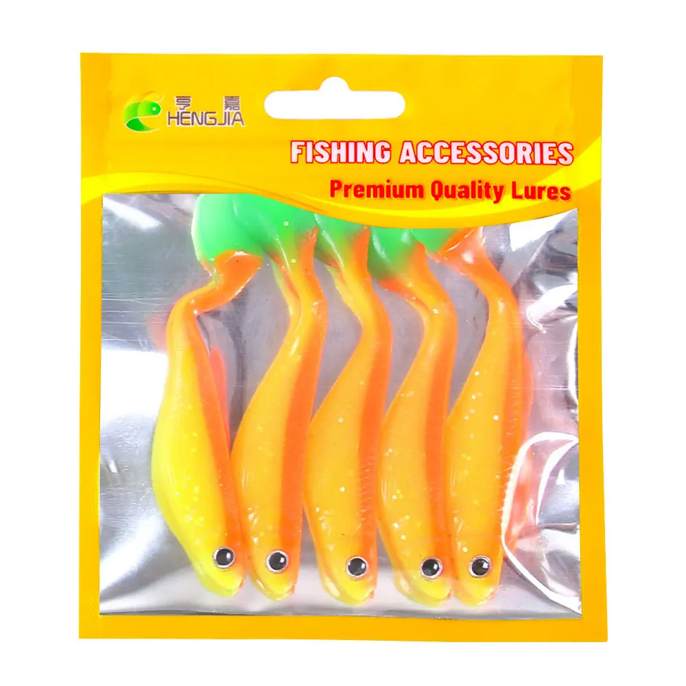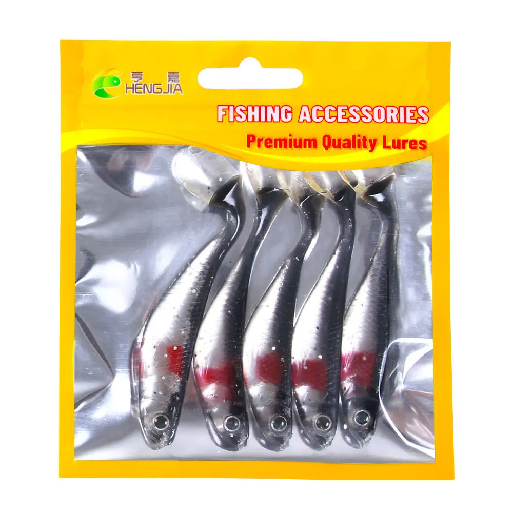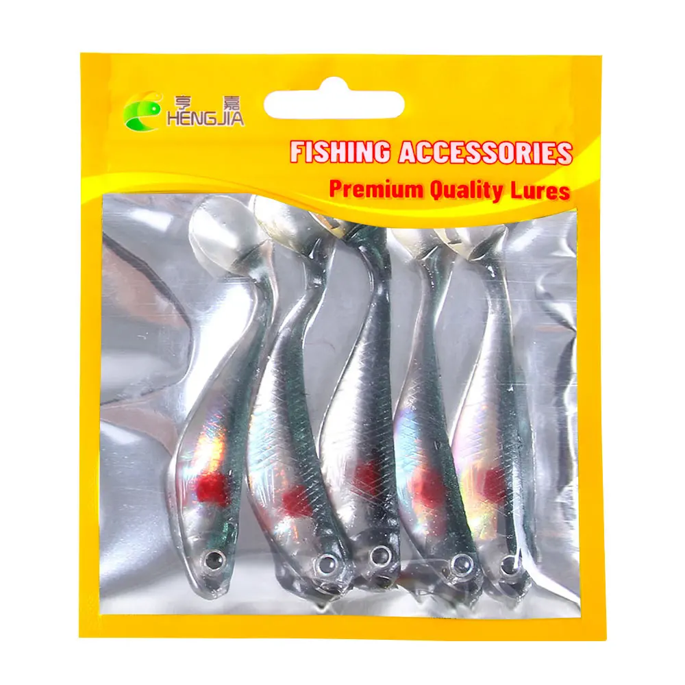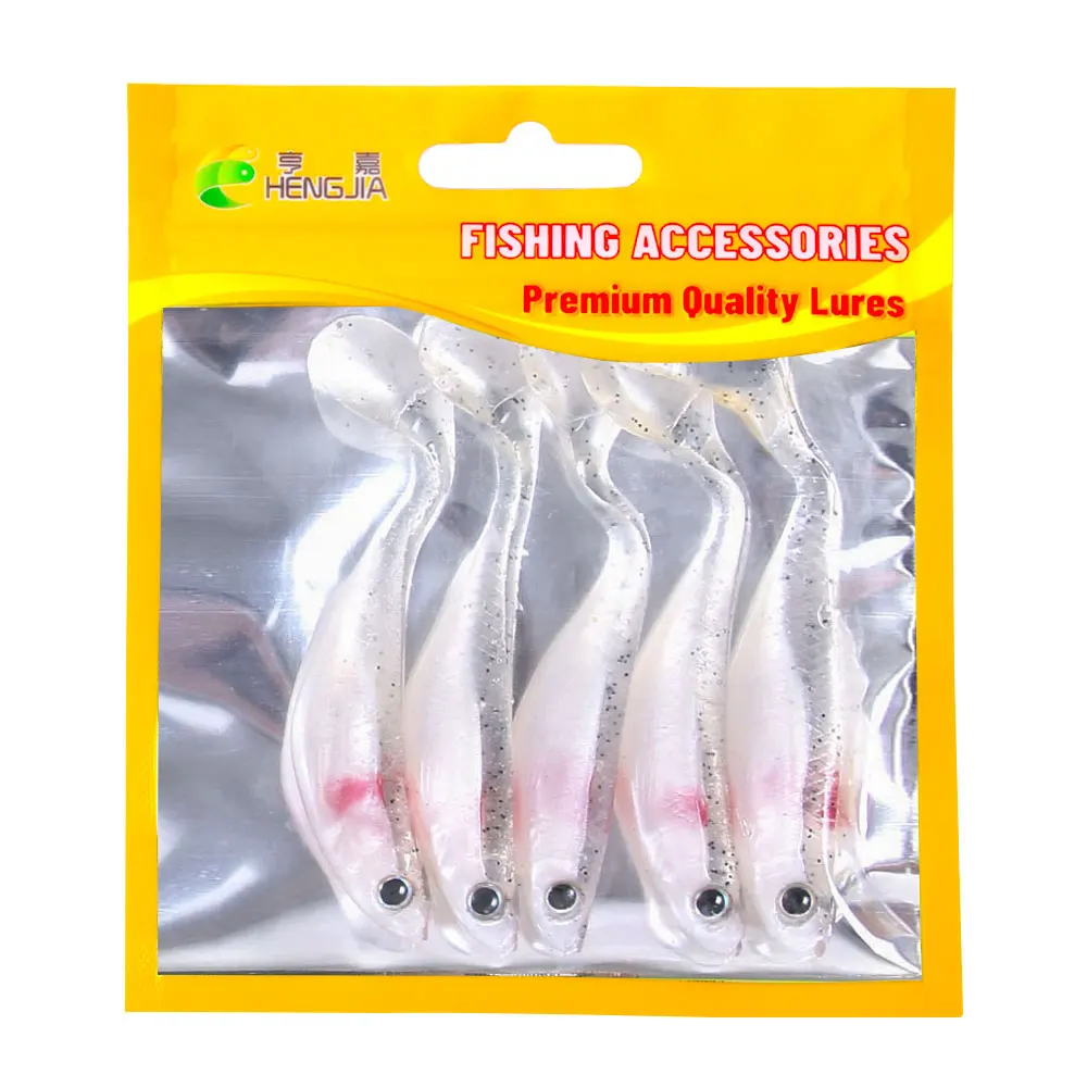 Juego de Señuelos de Pesca blandos con cola en T, 5 uds., ojos 3D para lubina, Pike, Walleye, perca, cola de paleta, Swimbait, aparejos de cebo Artificial