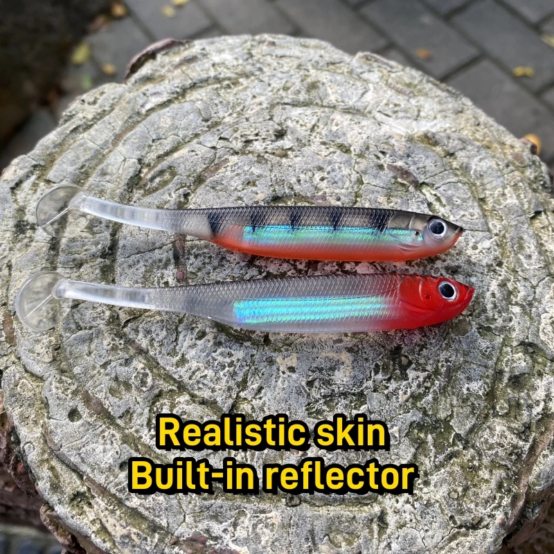 Juego de Señuelos de Pesca con cebo suave, escamas de pescado 3D, anzuelo con cabeza de anzuelo de plomo para lubina, aparejos de pesca de trucha, cola en T para pesca en agua salada