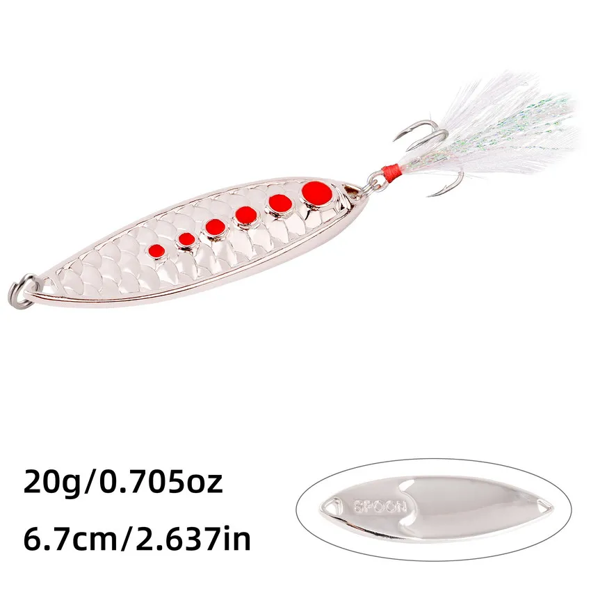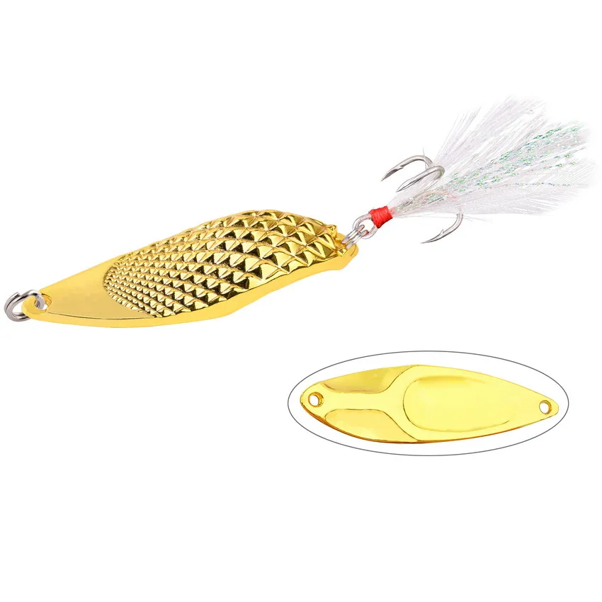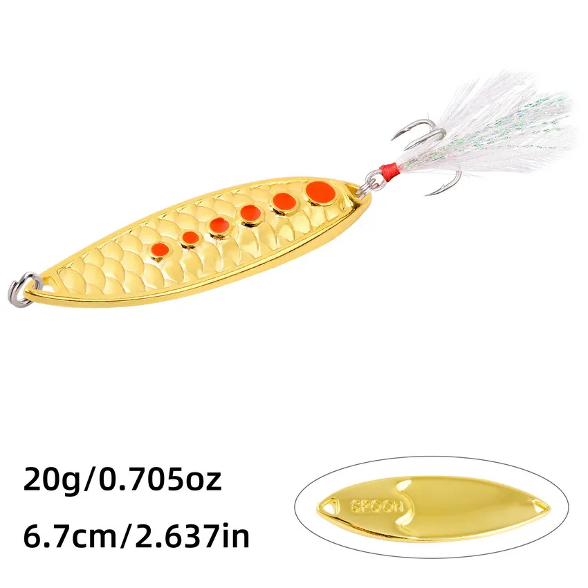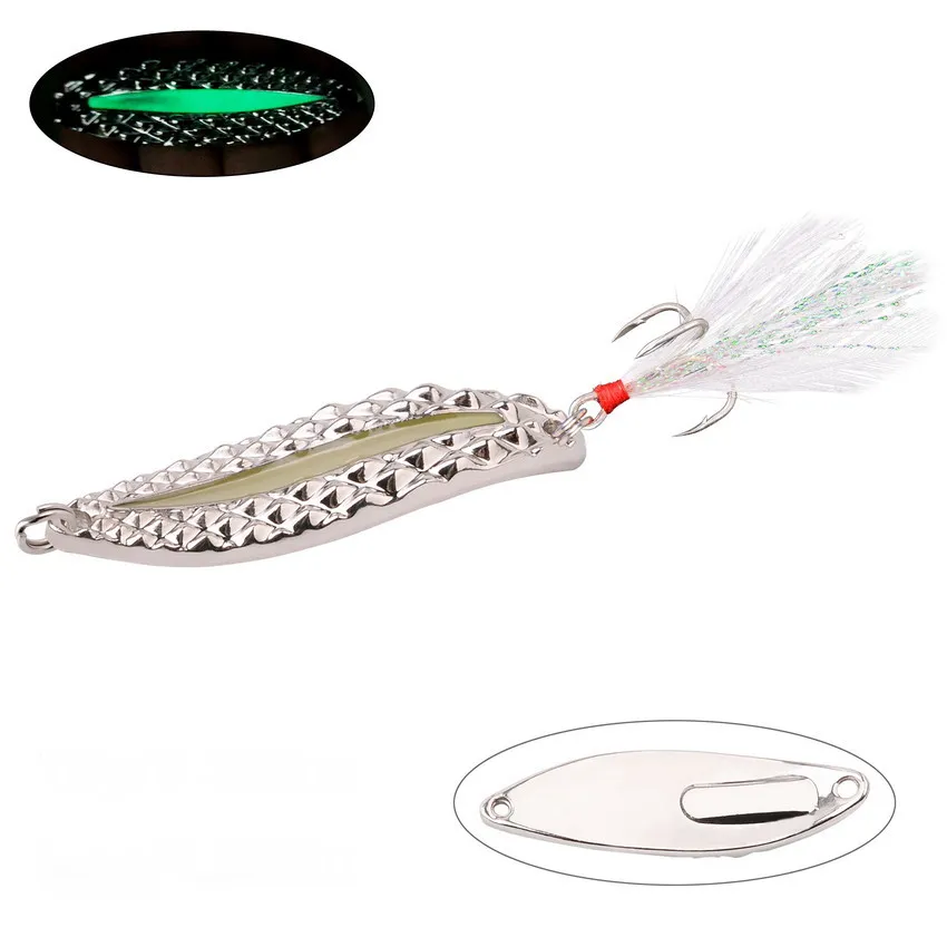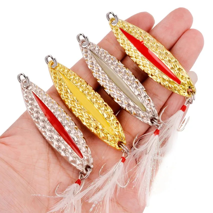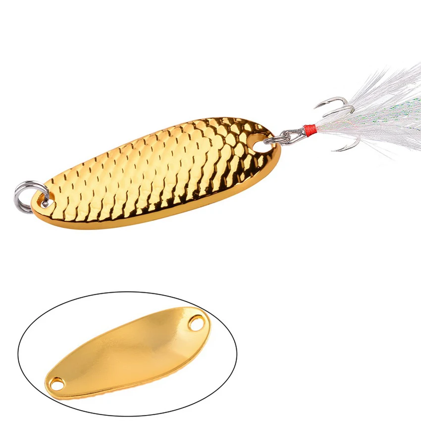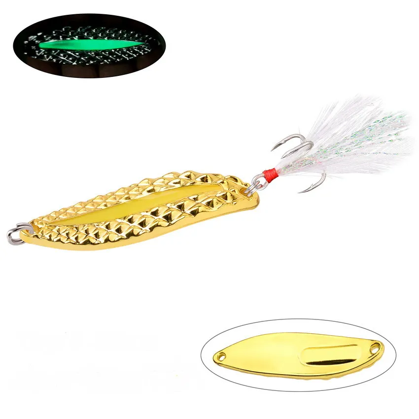 Juego de Señuelos de Pesca con cuchara giratoria luminosa de Metal, aparejos de 10g, 15g y 20g, cebo de lentejuelas, Paillette de ruido con anzuelo triple de plumas, 16 Uds.