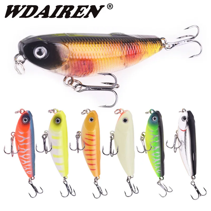 7 unids/lote lápiz de colores mezclados juego de señuelos de Pesca duros Minnow cebos Kit Wobbler Crankbaits Pesca con caja anzuelos triples aparejos de lubina