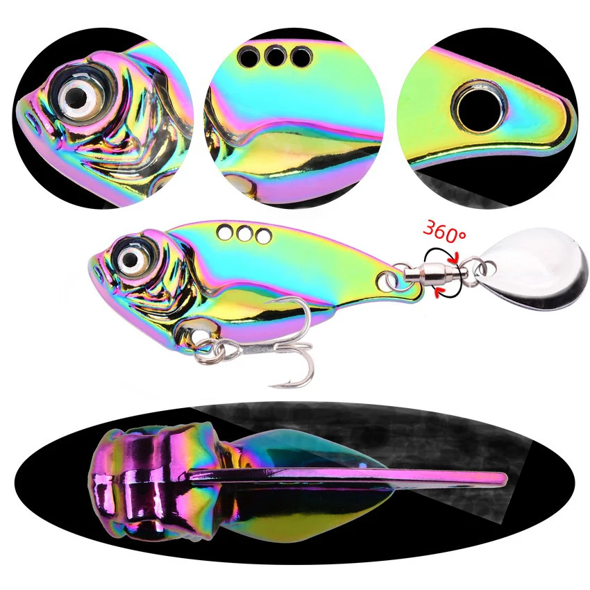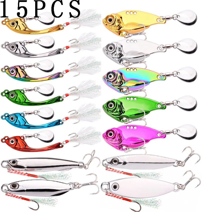 Juego de Señuelos de Pesca giratorios, cebos duros artificiales, giratorios de Metal, Vib, vibración, para invierno, 15 piezas