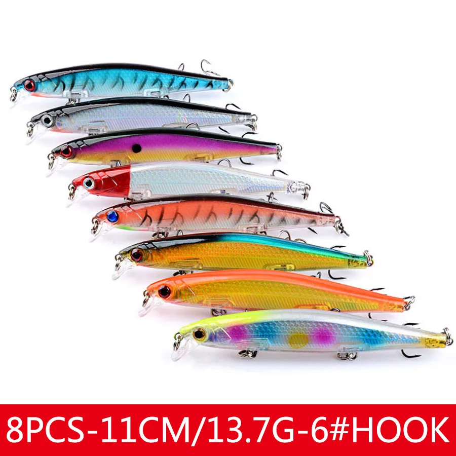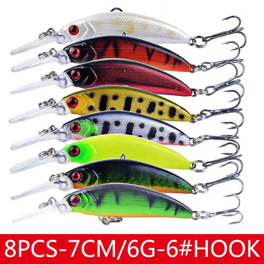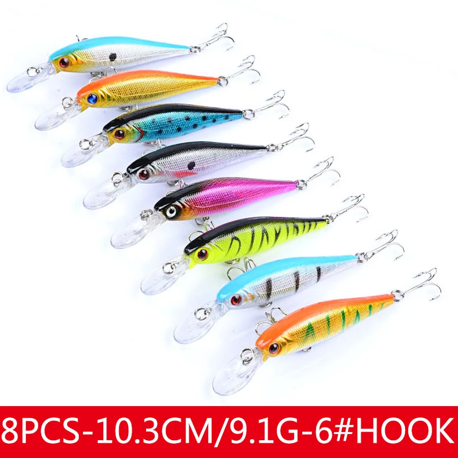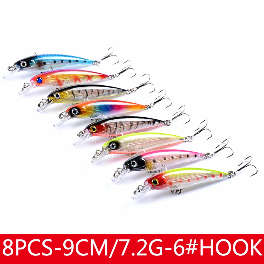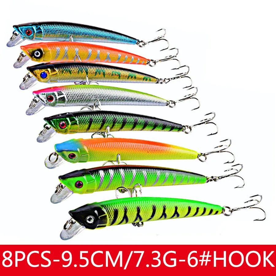 Juego de Señuelos de Pesca Jerkbait Crankbait de 8 piezas, Kit de cebo duro, Wobbler Artificial para Lucio, curricán, carpa, aparejos de pesca Swimbait