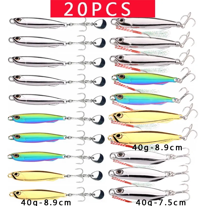 Juego de señuelos de pesca Jigging, cebo de Metal para agua salada, aparejos prácticos, accesorios de agua salada, 30g, 40g, 60g, 80g, 20 piezas