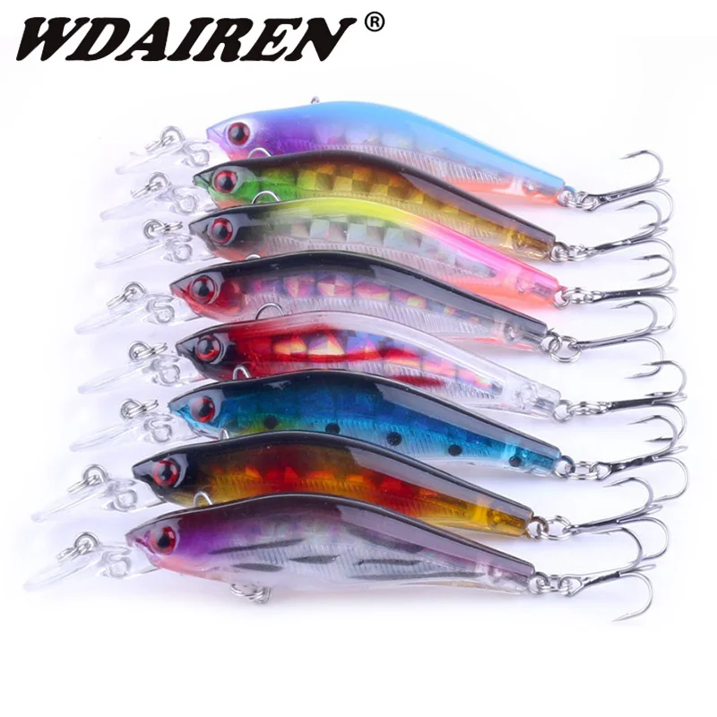 8 unids/lote juego de Señuelos de Pesca láser 85mm 6.5g Minnow Crankbait Wobblers ojos 3D Swimbait Kit de cebo duro Artificial Pesca