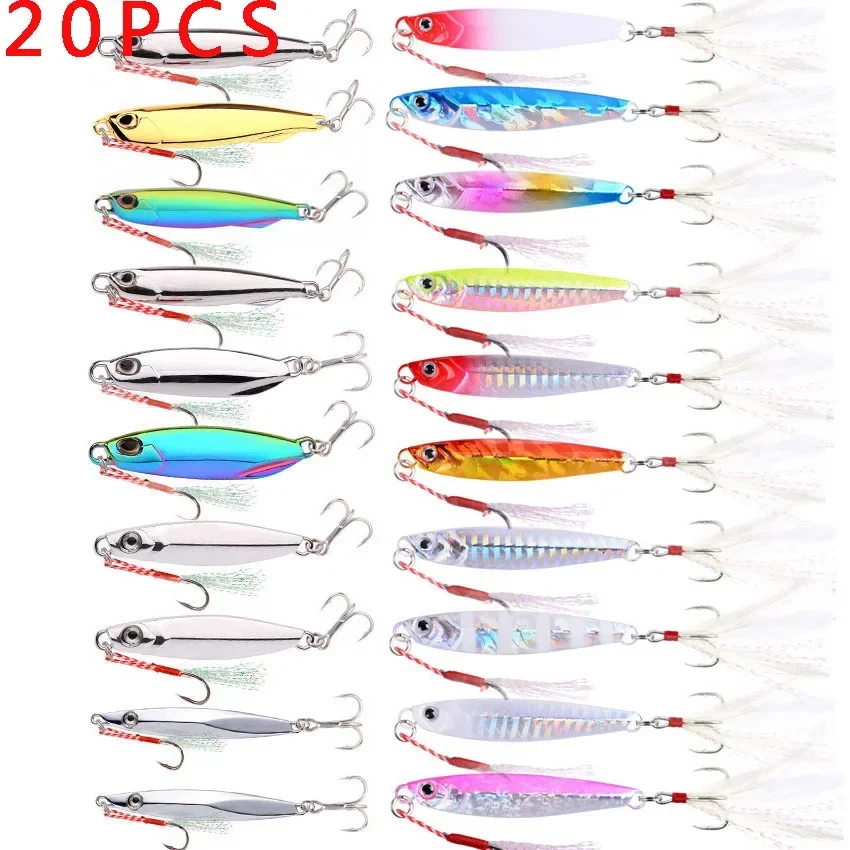 Juego de Señuelos de Pesca de Lucio de plantilla de Metal, de agua salada de Jigging señuelo, cebos artificiales duros, Accesorios de aparejos de Pesca, 40g, 20 piezas