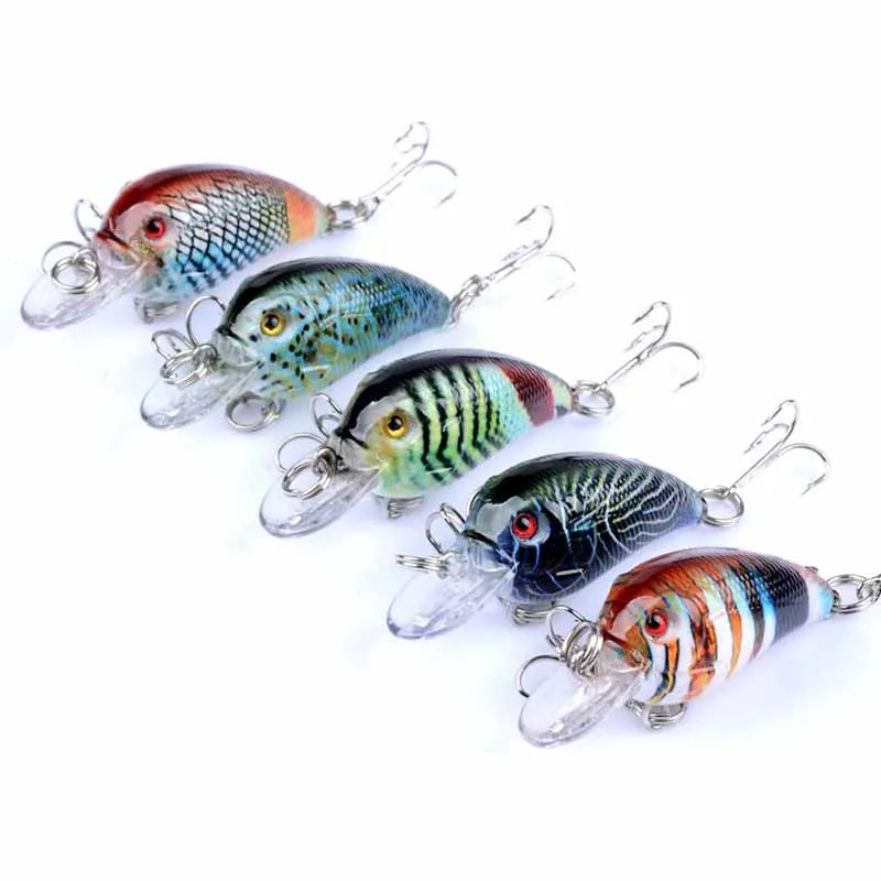 Juego de Señuelos de Pesca Minnow de colores mezclados, Mini Wobblers de manivela de 4,5cm y 4,2g con anzuelos triples, aparejos, Kit de Crankbaits de natación Topwater, 5 uds.