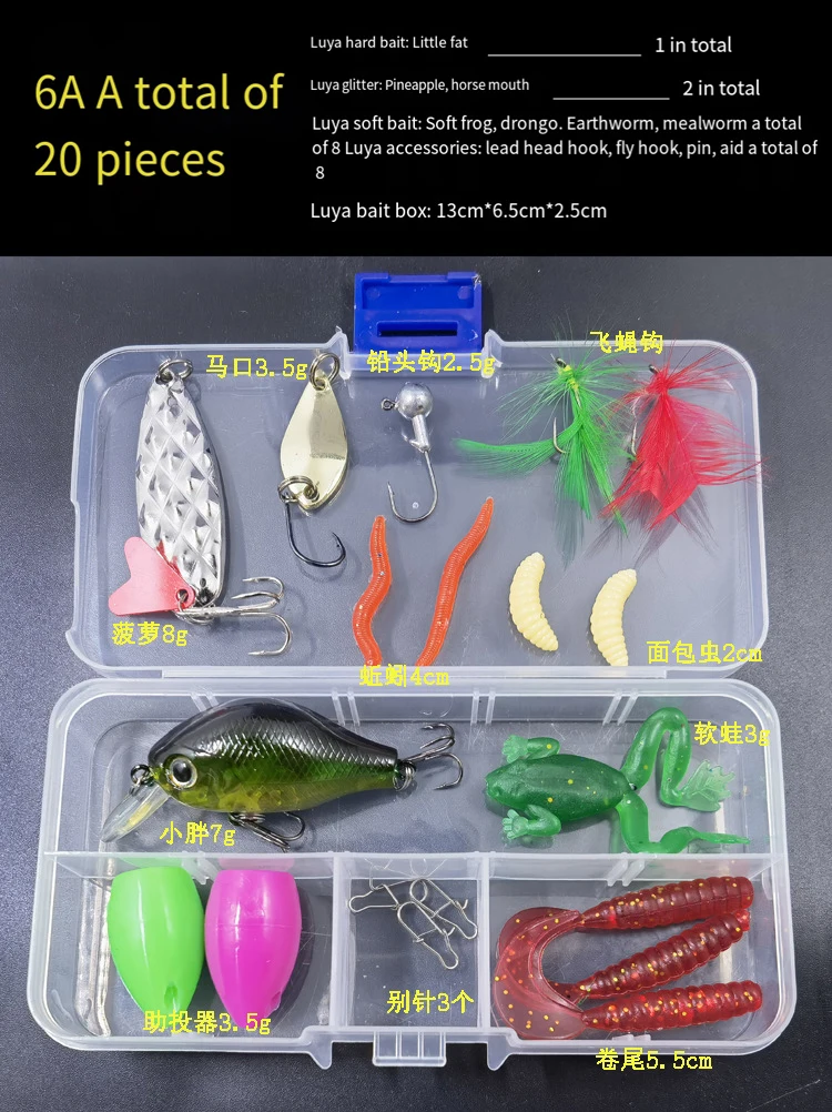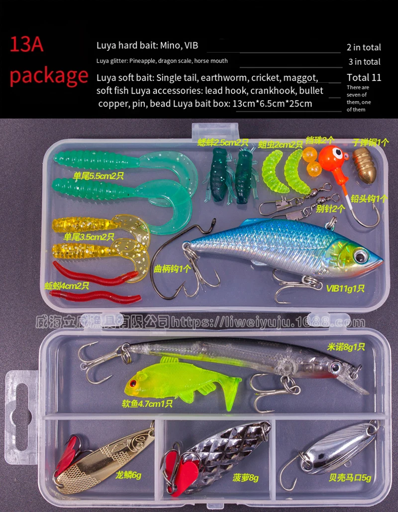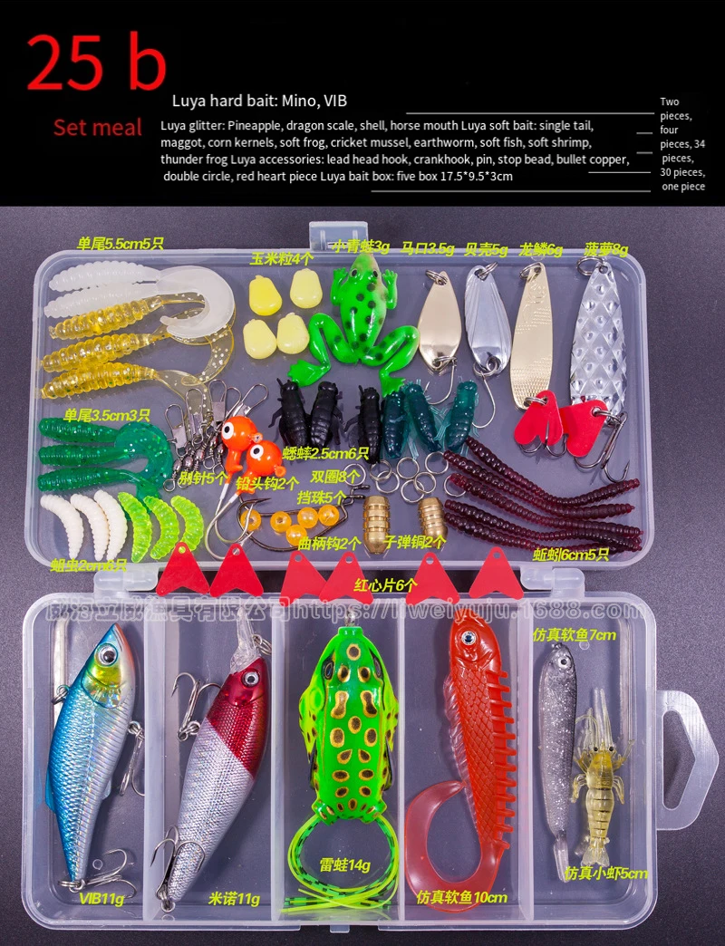 Juego de Señuelos de Pesca mixtos, Kit de cebo suave y duro, plantilla de Metal para pececillos, cuchara, accesorios de aparejos con caja para Lucio, juego de señuelos con manivela