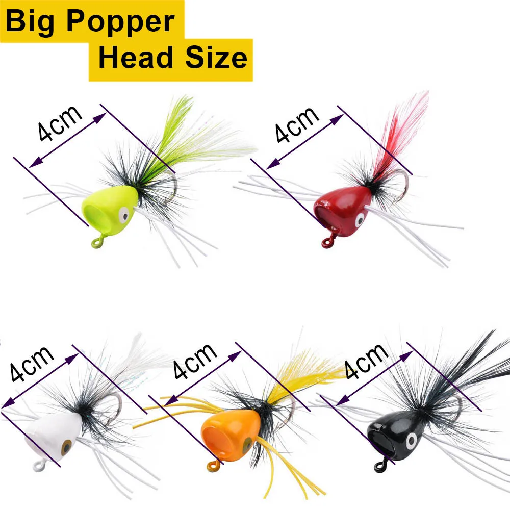 15Pcs Foam Popper heads fly Fishing Saltwater Topwater Floats bait Flies Tying Poppers Jig Bass Walleye Panfish Lure Fishing Kit