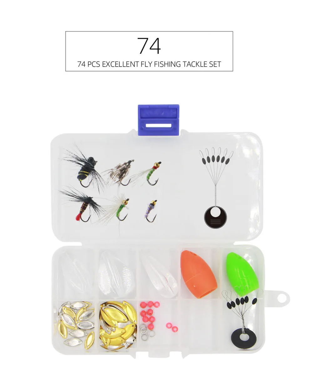 Juego de señuelos de pesca con mosca, Kit de accesorios, Spinner de plomo, aparejos de línea, grupo giratorio, anzuelo, cebo Artificial, trucha, Mini moscas duras