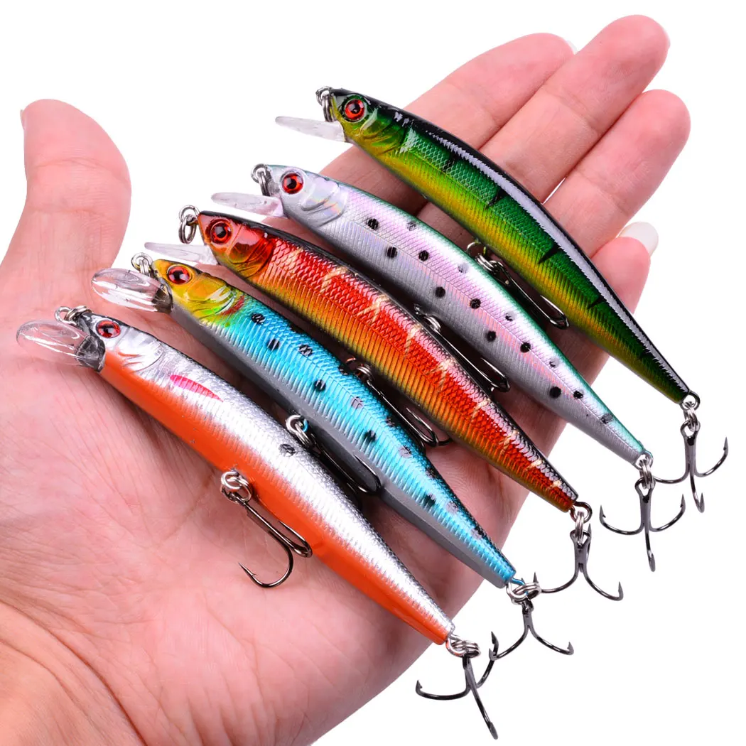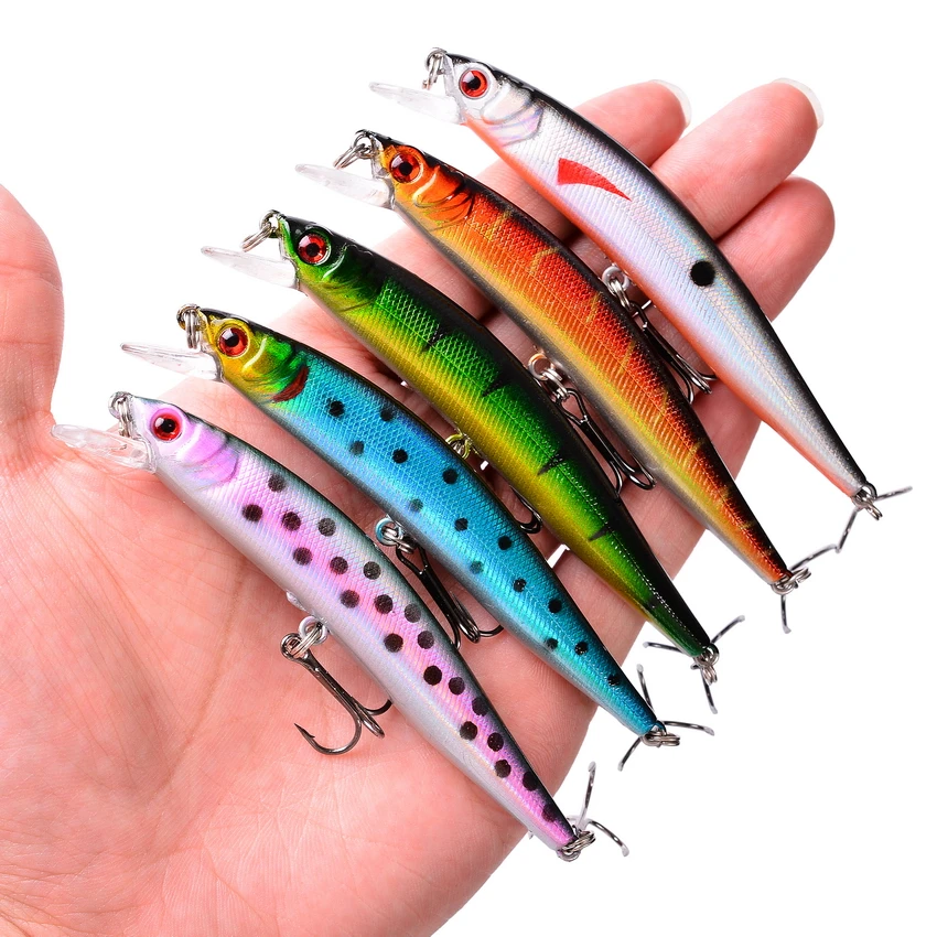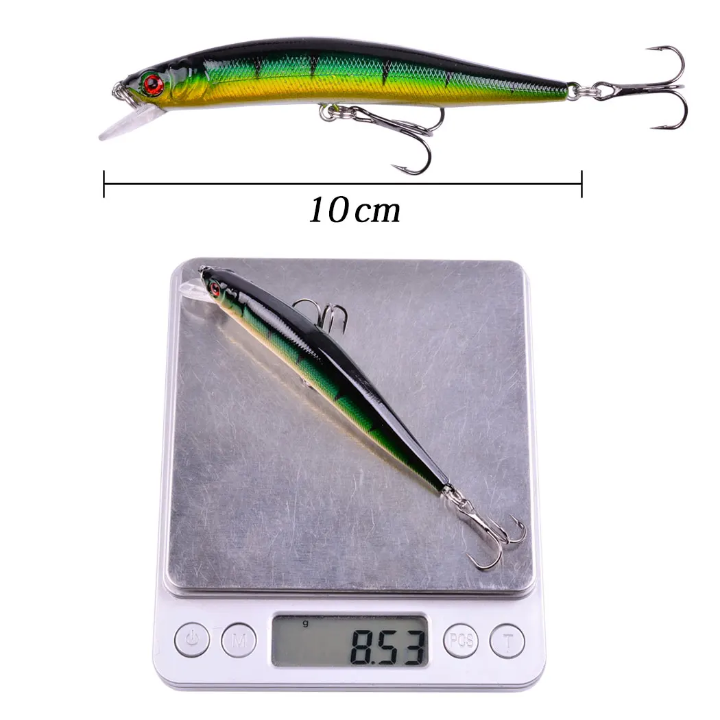 Juego de Señuelos de Pesca de pececillos, 5 piezas, 98mm, 8,5g, anzuelo flotante duro, Crankbait, carpa a rayas, aparejos de Pesca SwimBait