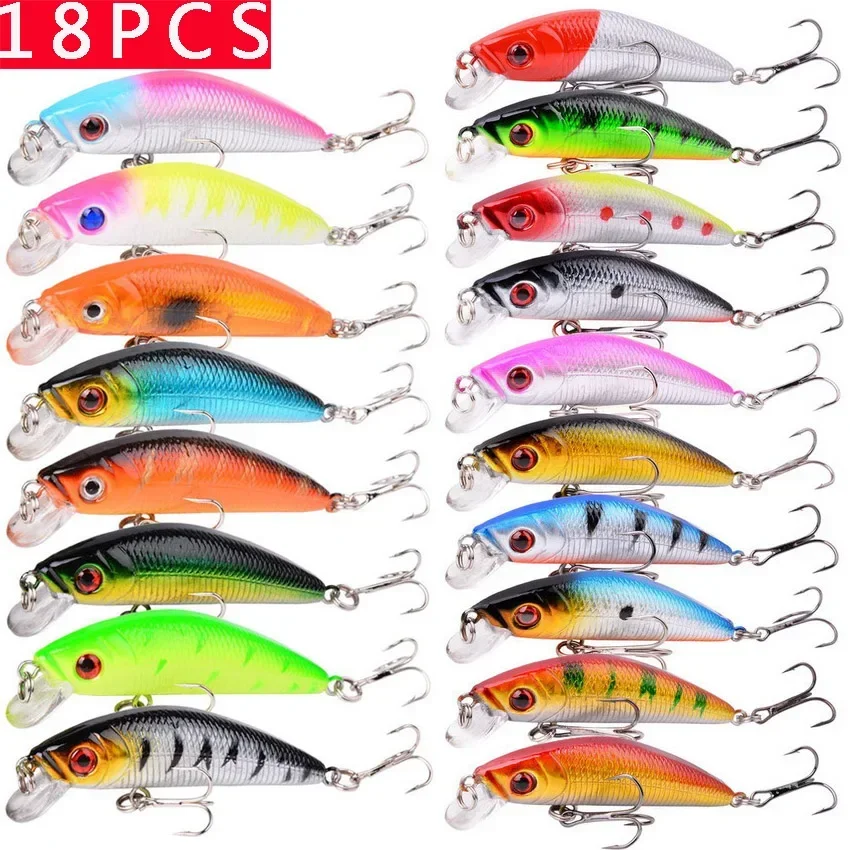 Juego de Señuelos de Pesca de pececillos, cebos duros de plástico Artificial, Wobbler Crankbait, ojos 3D, 8/10/18 piezas