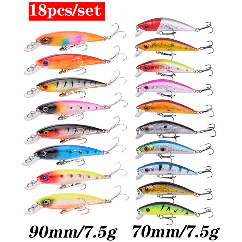 18pcs/Lot Minnow Crankbaits Fishing Lures Set Sea Bass Feather Wobbler Artificial Bait For Fishing Tackle Hard Plastic Swimbait