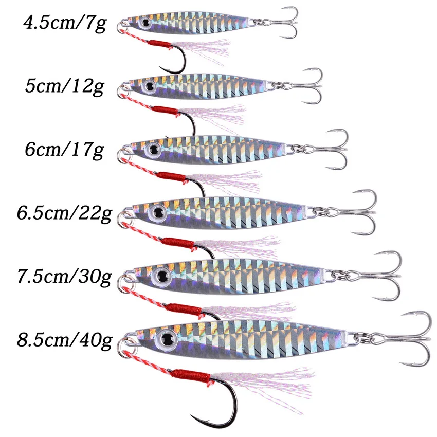 Juego de Señuelos de pesca con plantilla de Metal, 7g, 12g, 22g, 30g, 40g, 60g, 80g, señuelos de Jigging de fundición, plantillas, cuchara, cebo Artificial de agua salada, 1 Uds.