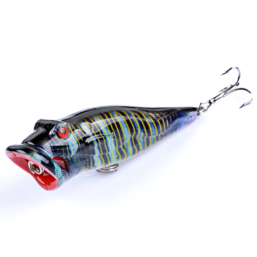 Señuelo de pesca Popper Crankbait a rayas, 5 uds., tacillo de 8cm/12,4g, cebo duro Artificial pintado con puntos con gancho wobbler para peces/luces mar