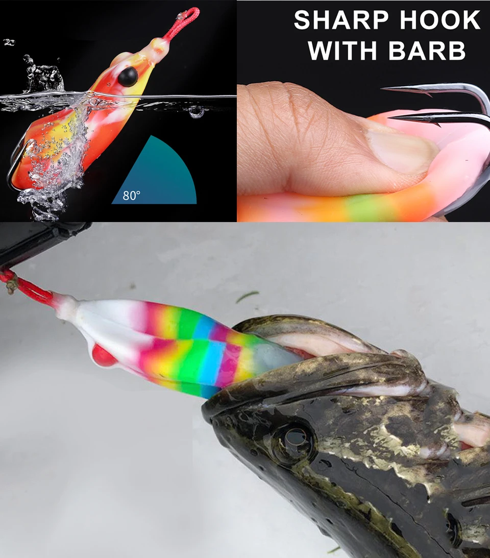 2.El gancho y#x27; Los puntos descansan en el costado del cuerpo y apuntan hacia arriba hacia la cabeza, evitan que el señuelo se enganche en cualquier cosa durante la recuperación.