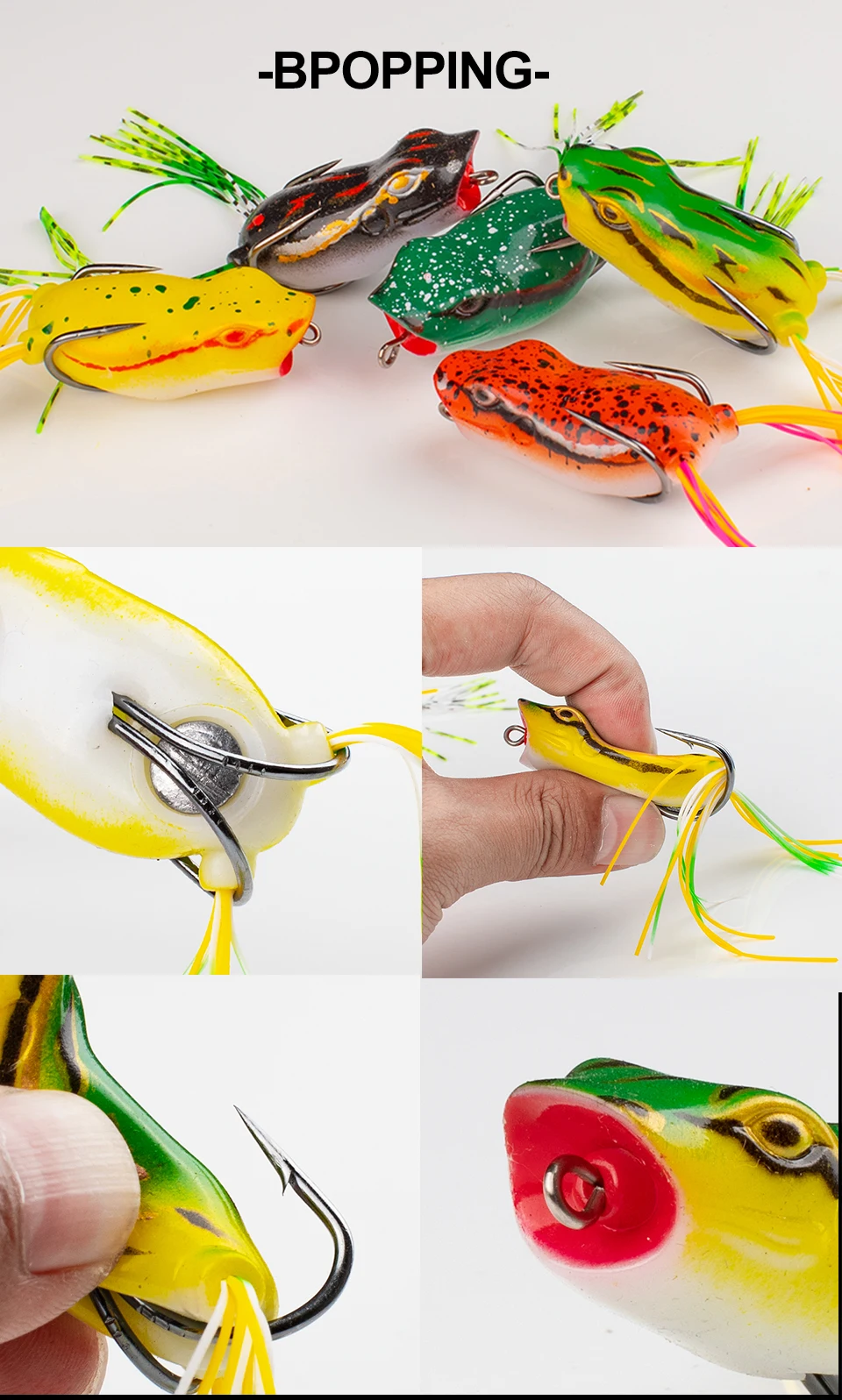Juego de señuelos de silicona suave de rana, 5 uds., cebo Crankbait, señuelo de pesca, pesca de carpa, Wobbler, cebo Artificial, caja de aparejos