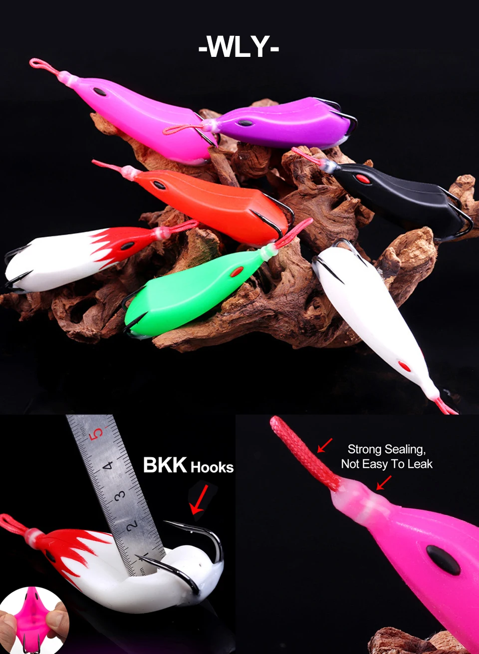 Nuestros cebos para señuelos de pesca están hechos de plástico, son suaves y elásticos.Los colores brillantes son buenos para pescar.Adecuado para pesca en agua salada y dulce.Acción de buceo suave y rápida, atrae a los peces fácilmente.