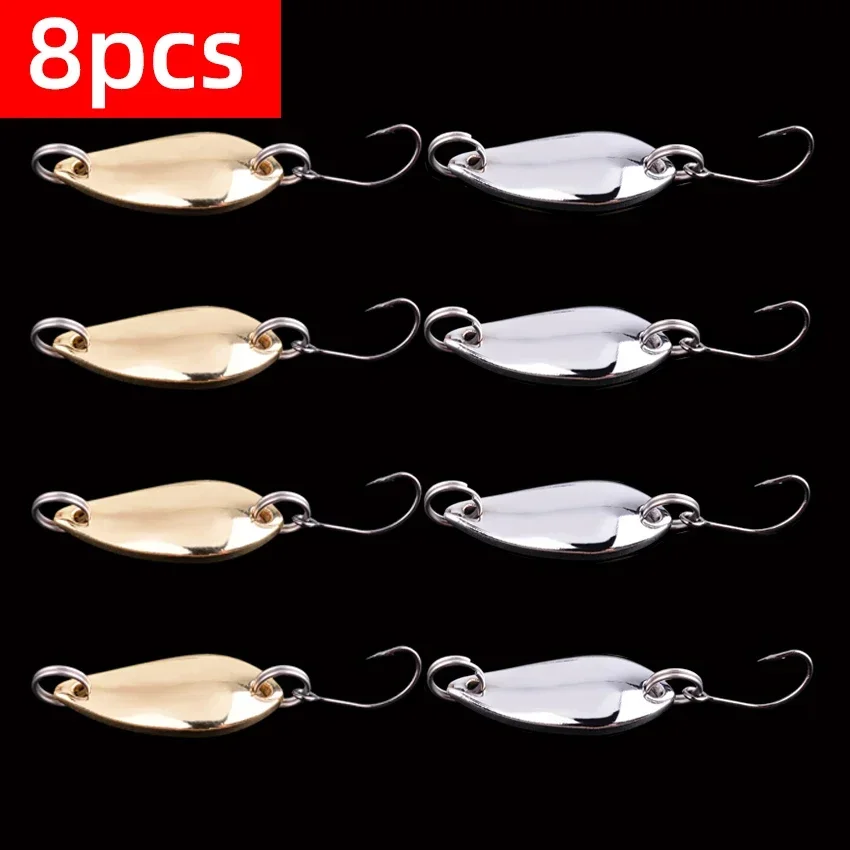 Juego de señuelos para trucha/bajo, 8 Uds., cuchara giratoria, cuchara, bobina, cebo Artificial/duro, lentejuelas para aparejos de pesca de carpa/Wobblers/señuelos de mar