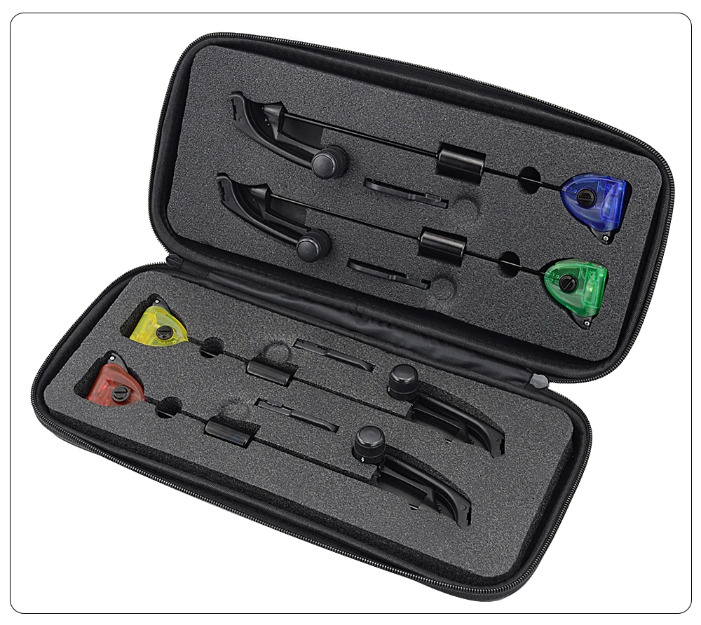 Juego de novatos LED para pesca de carpa en estuche para alarma de mordida, indicadores de mordida B2002