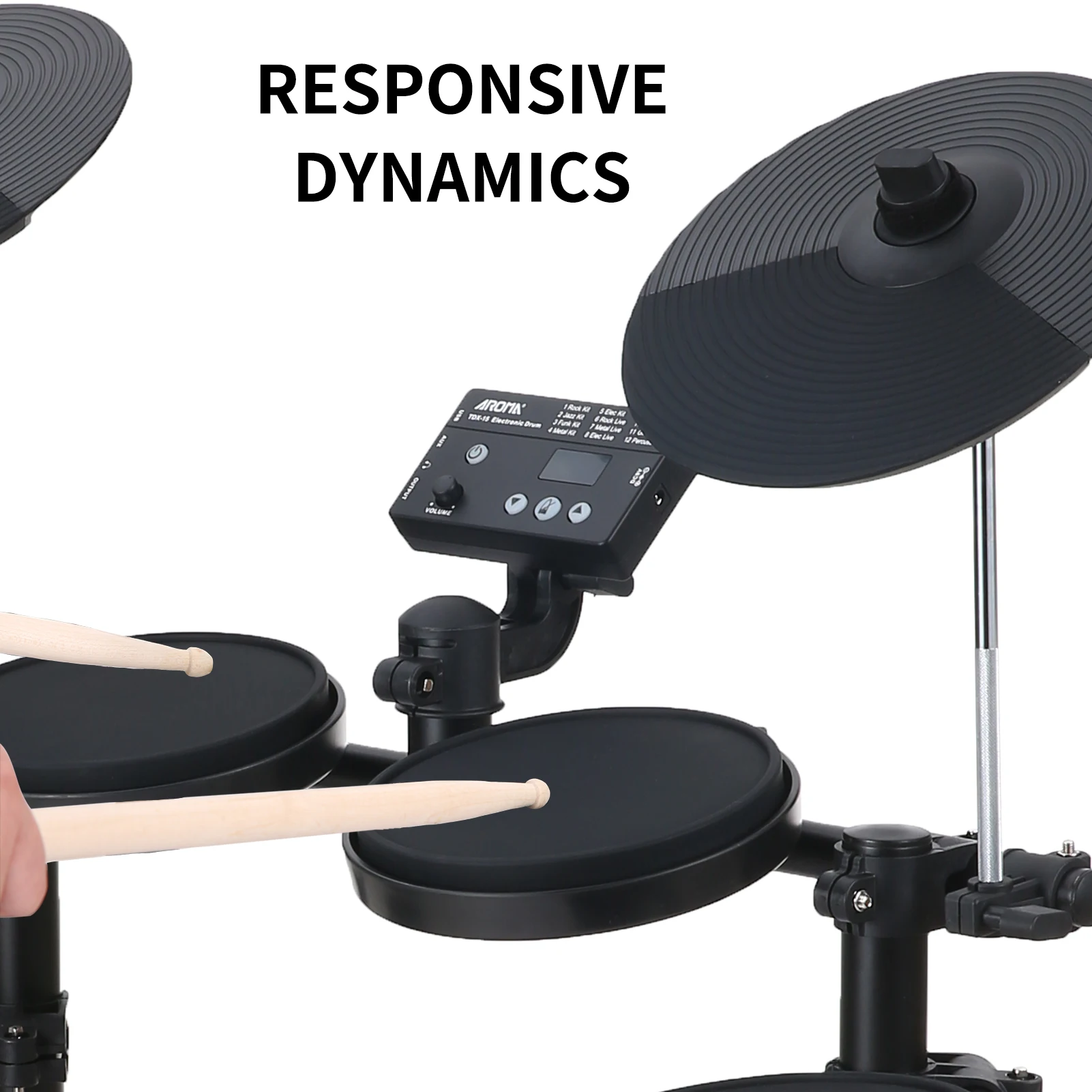 Con 144 tonos integrados y 12 tonos de batería prealmacenados, los tambores electrónicos cubren la mayoría de los estilos musicales, lo que le permite disfrutar de cada nota. De Rock a funk, de jazz a clásica, sea cual sea su preferencia, esta batería electrónica puede ofrecer una experiencia de juego más receptiva e inmersiva.
