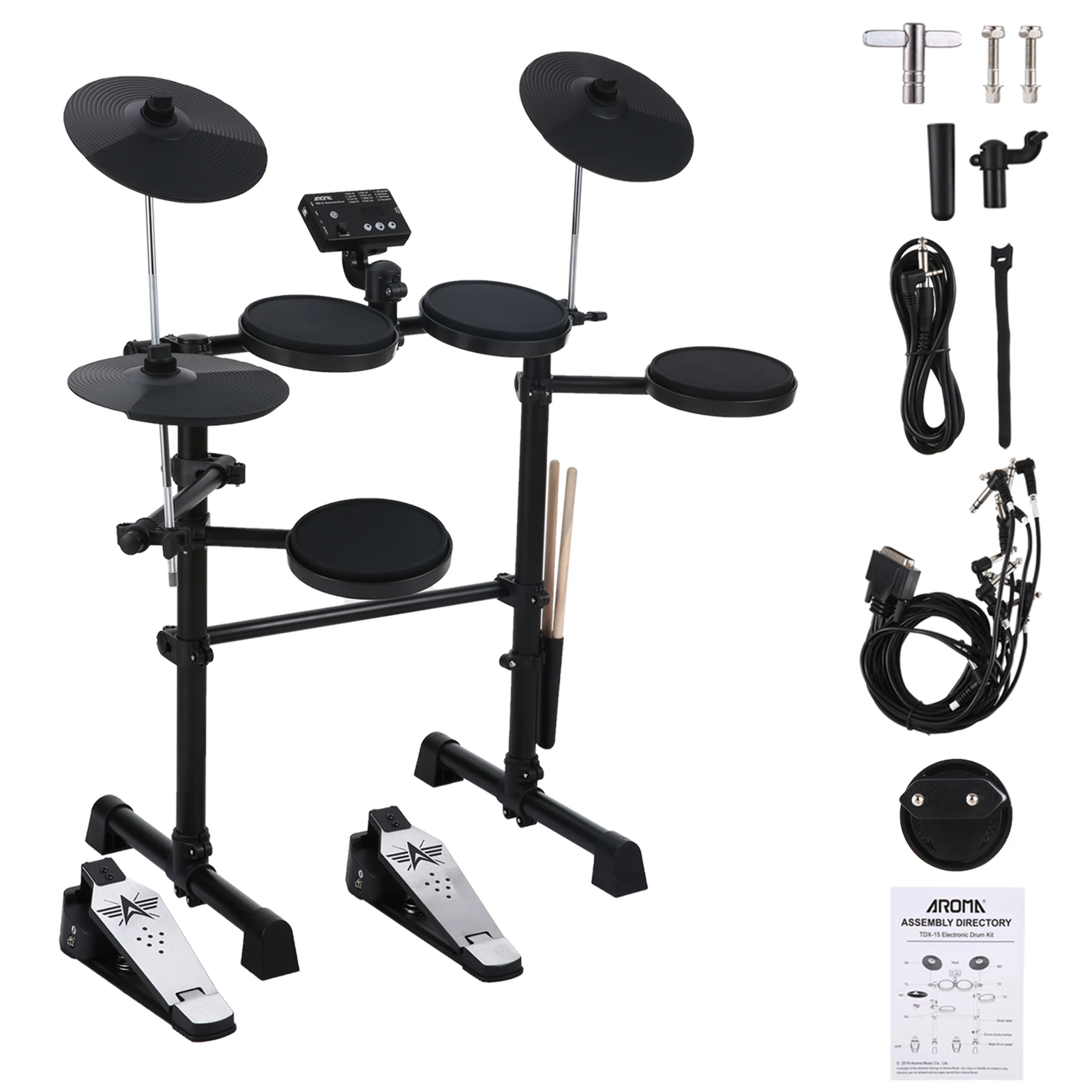 【Ligero y portátil】 El Kit de batería electrónica para adolescentes principiantes desarrolla un soporte de batería más estable, el tamaño es adecuado para adolescentes. Portátil y plegable, conveniente para el transporte y el espacio de almacenamiento, ¡adecuado para actuaciones en el hogar y al aire libre!