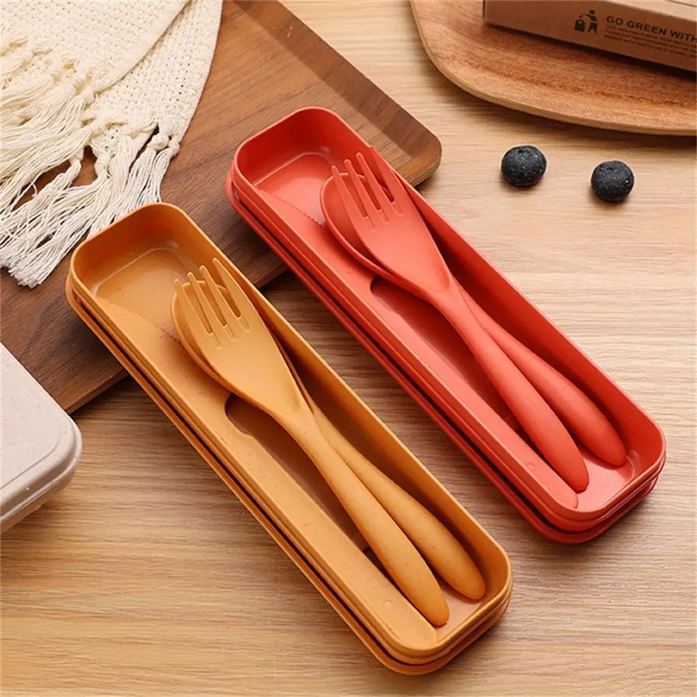 Package:1 set Utensil Reusable Cutlery Set with Box The Wheatgrass Spoon and Fork Set makes it easy to eat bread, pastries, salads, pasta, chicken and more. Wheat straw cutlery is a perfect replacement for black silver sets, plastic cutlery sets, disposable cutlery. The portable cutlery set with box is the perfect lunch box accessory for adults and kids. Live a healthier life with the Wheat Straw Lunch Box Tableware.