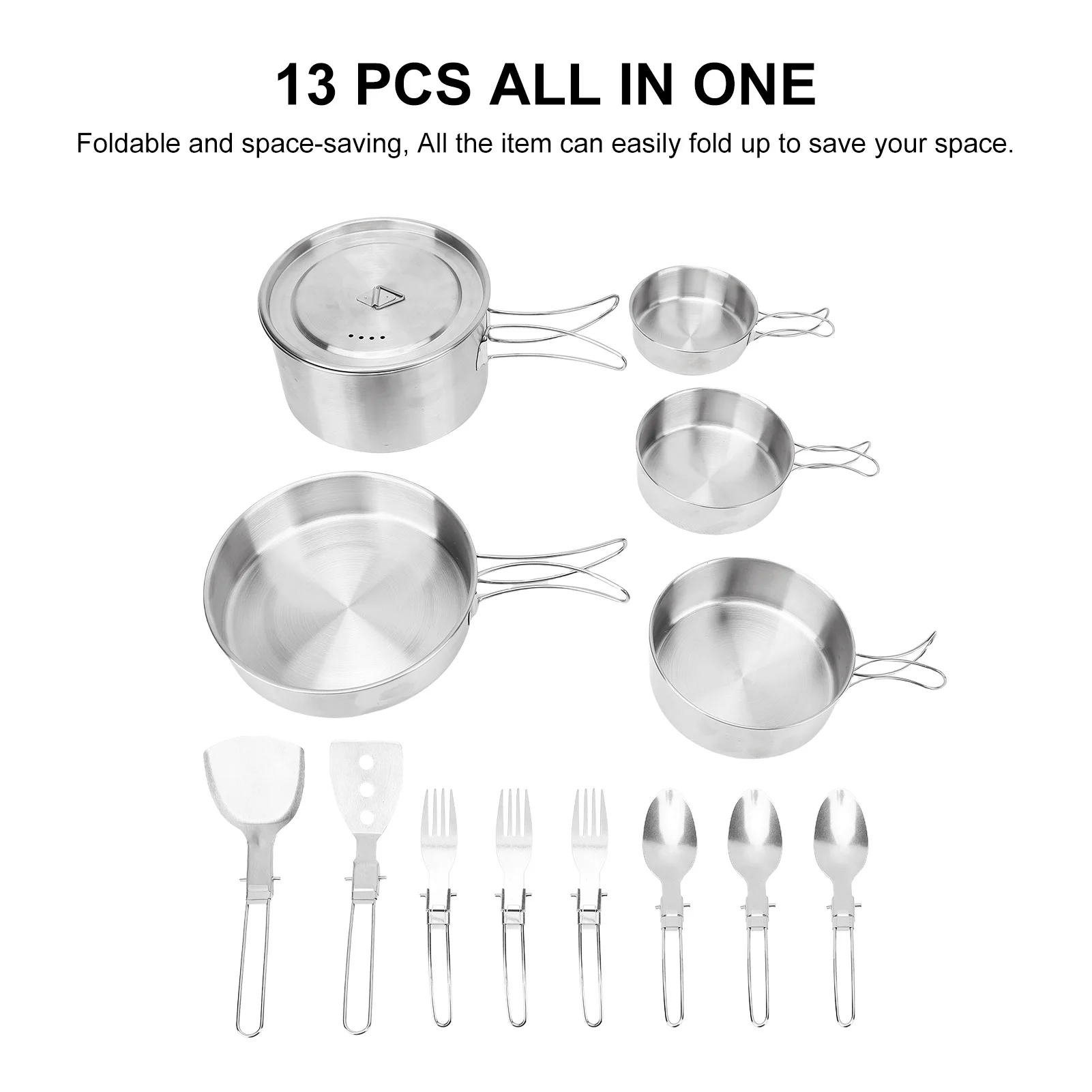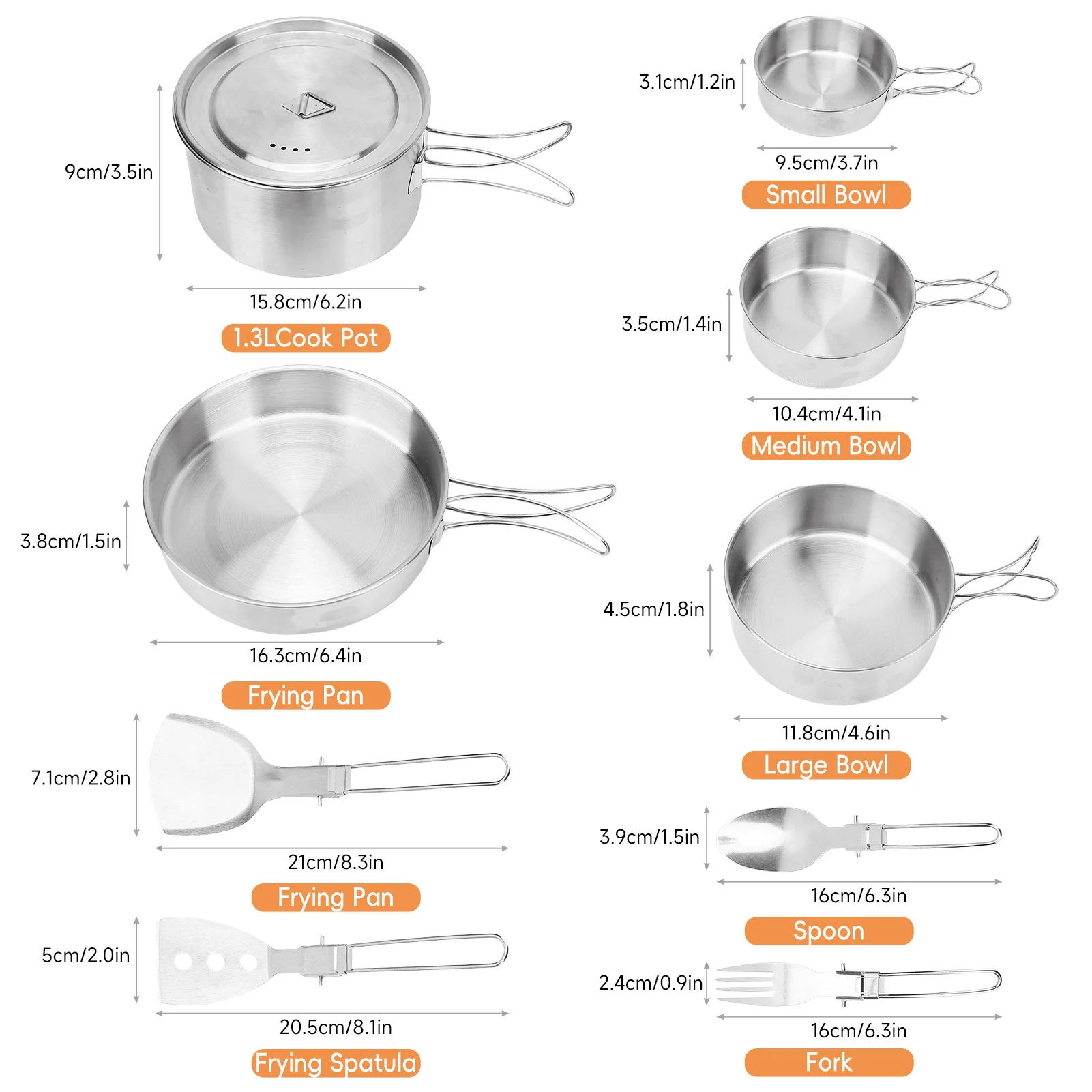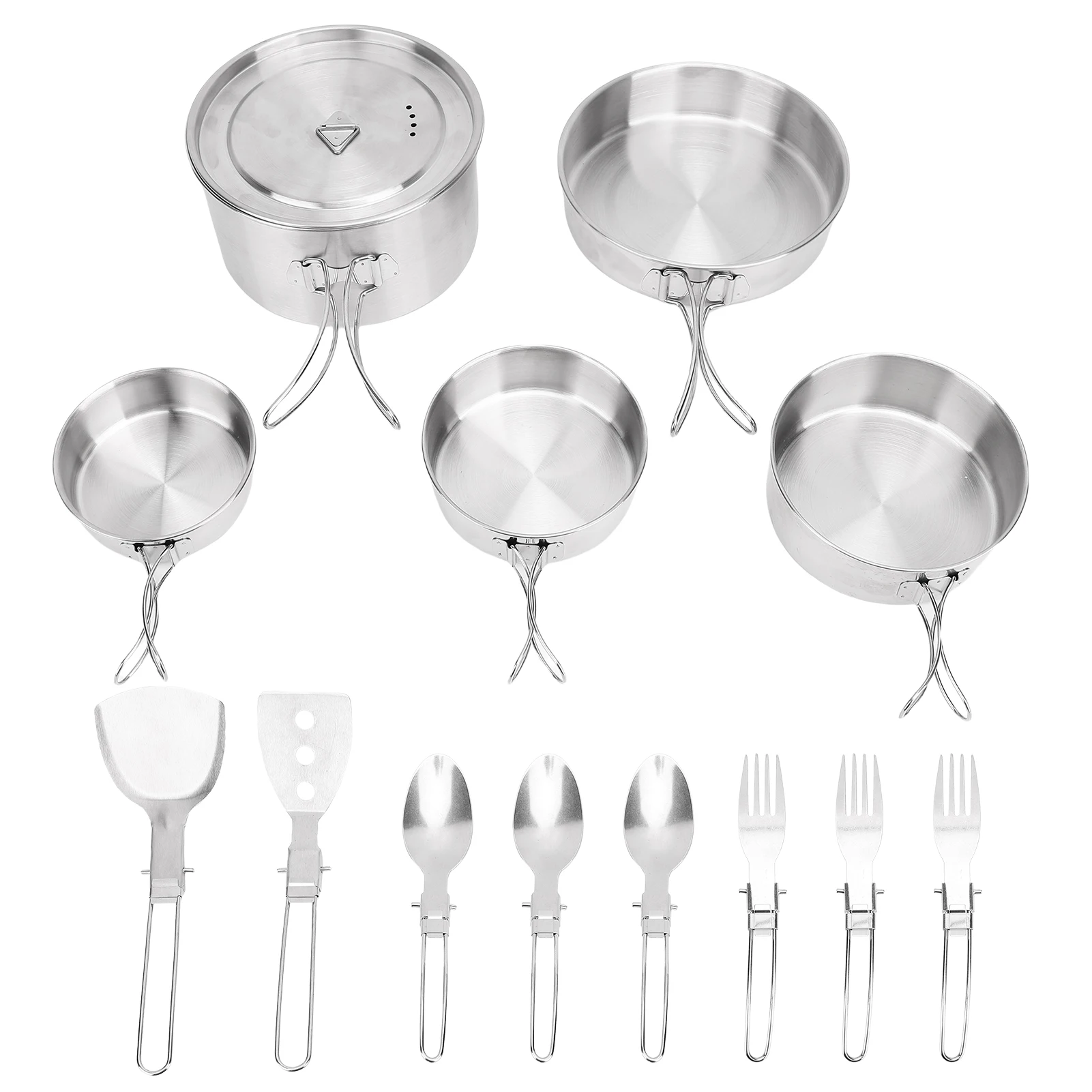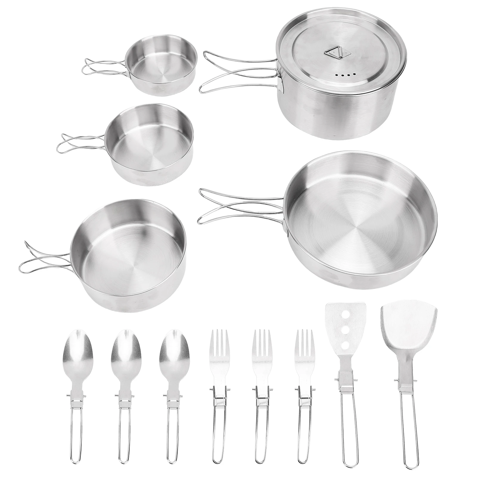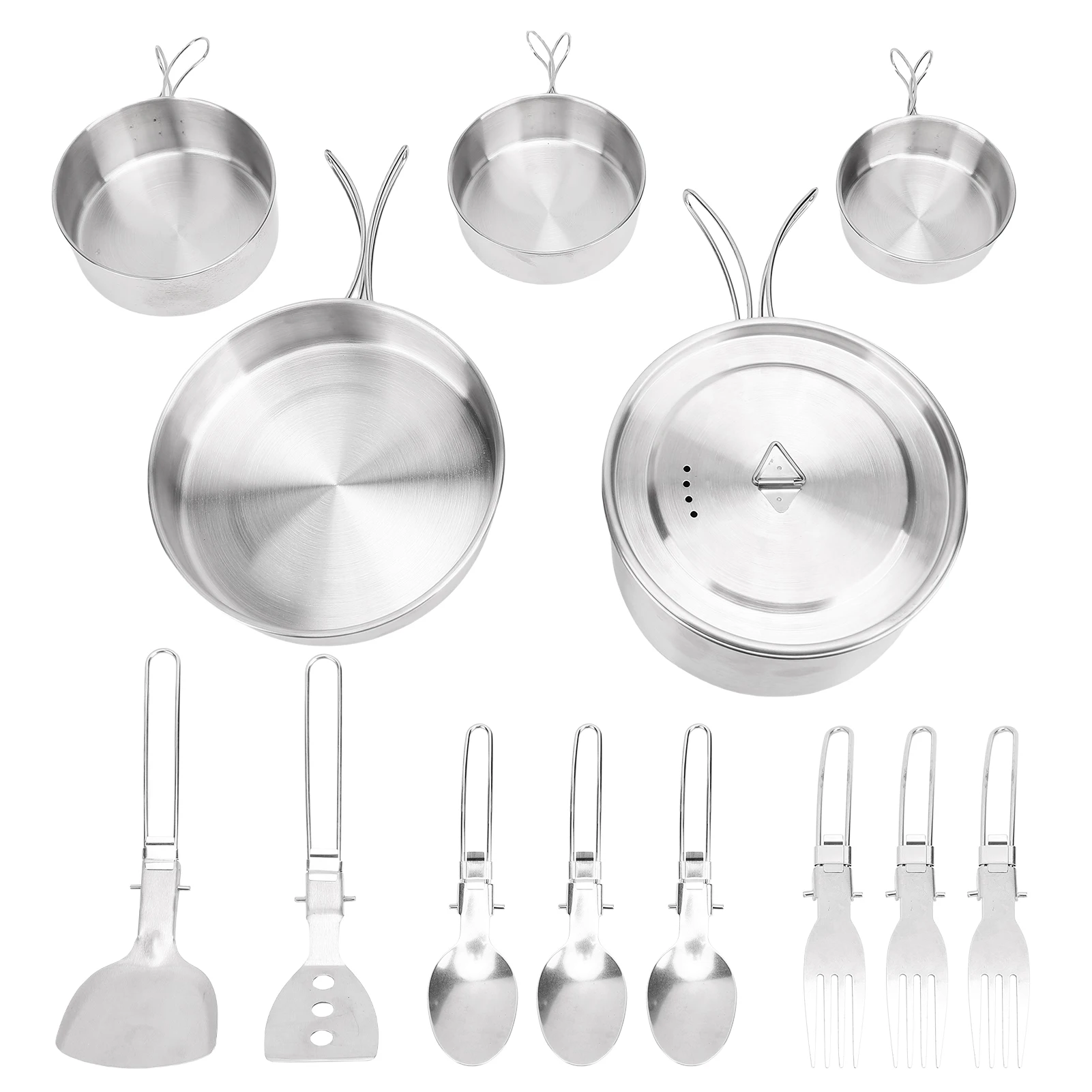 3.Ligero para facilitar el transporte: el juego de utensilios de cocina es liviano, lo que permite transportarlo fácilmente durante los viajes al aire libre.
