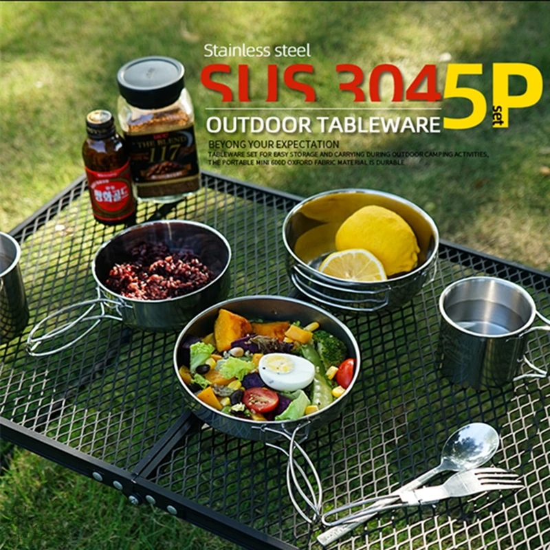 Juego de vajilla de Camping tazón plegable portátil grado alimenticio 304 Acero inoxidable 5 piezas