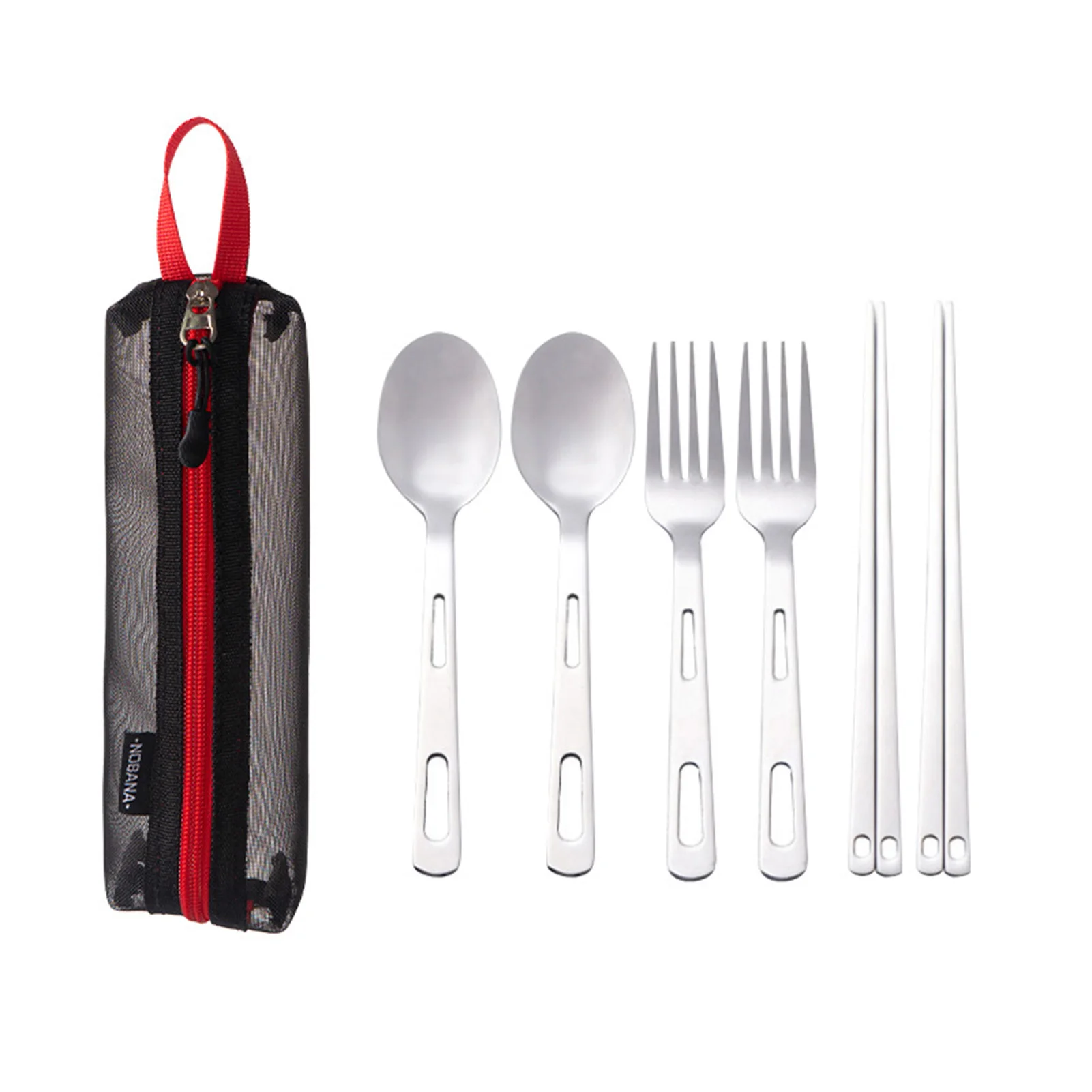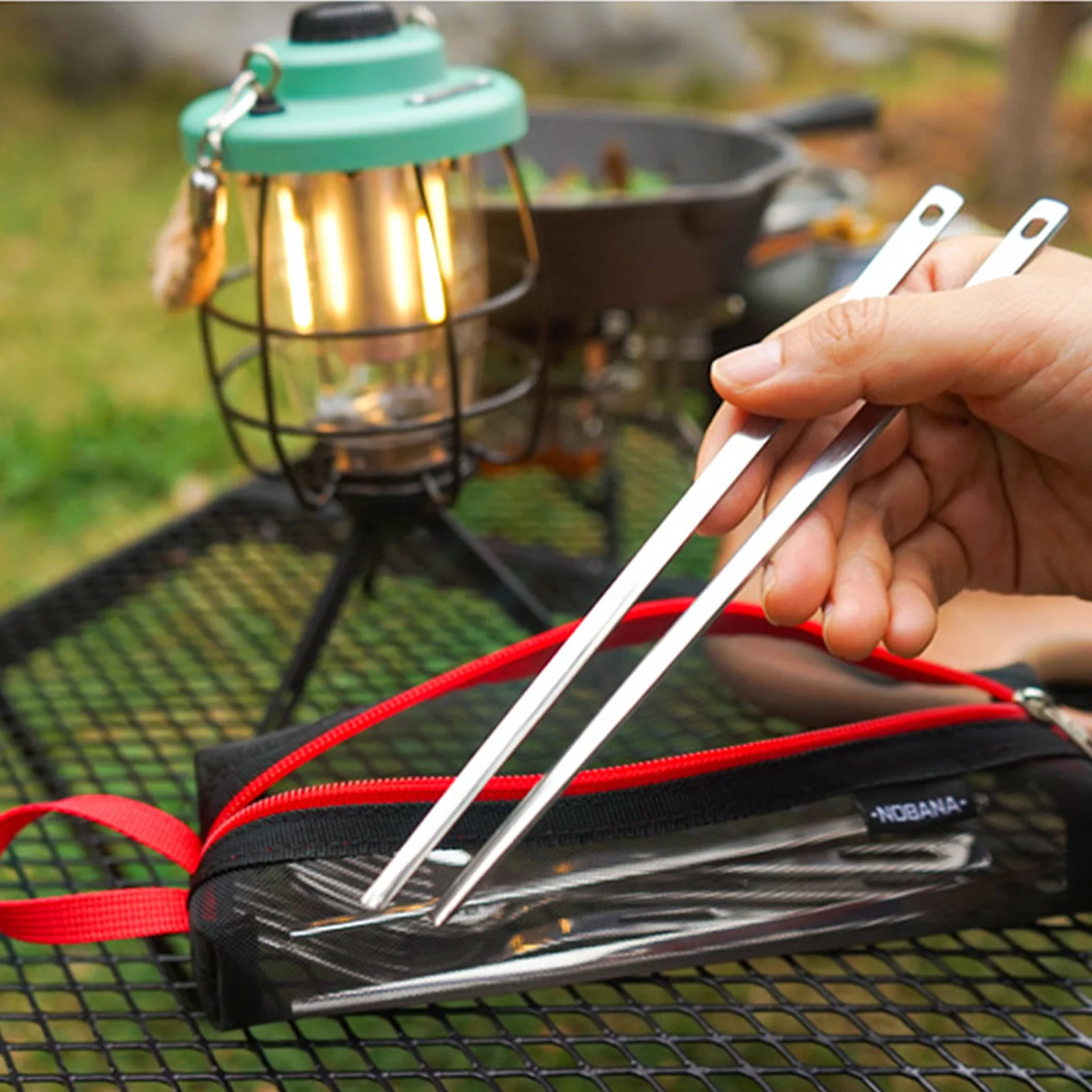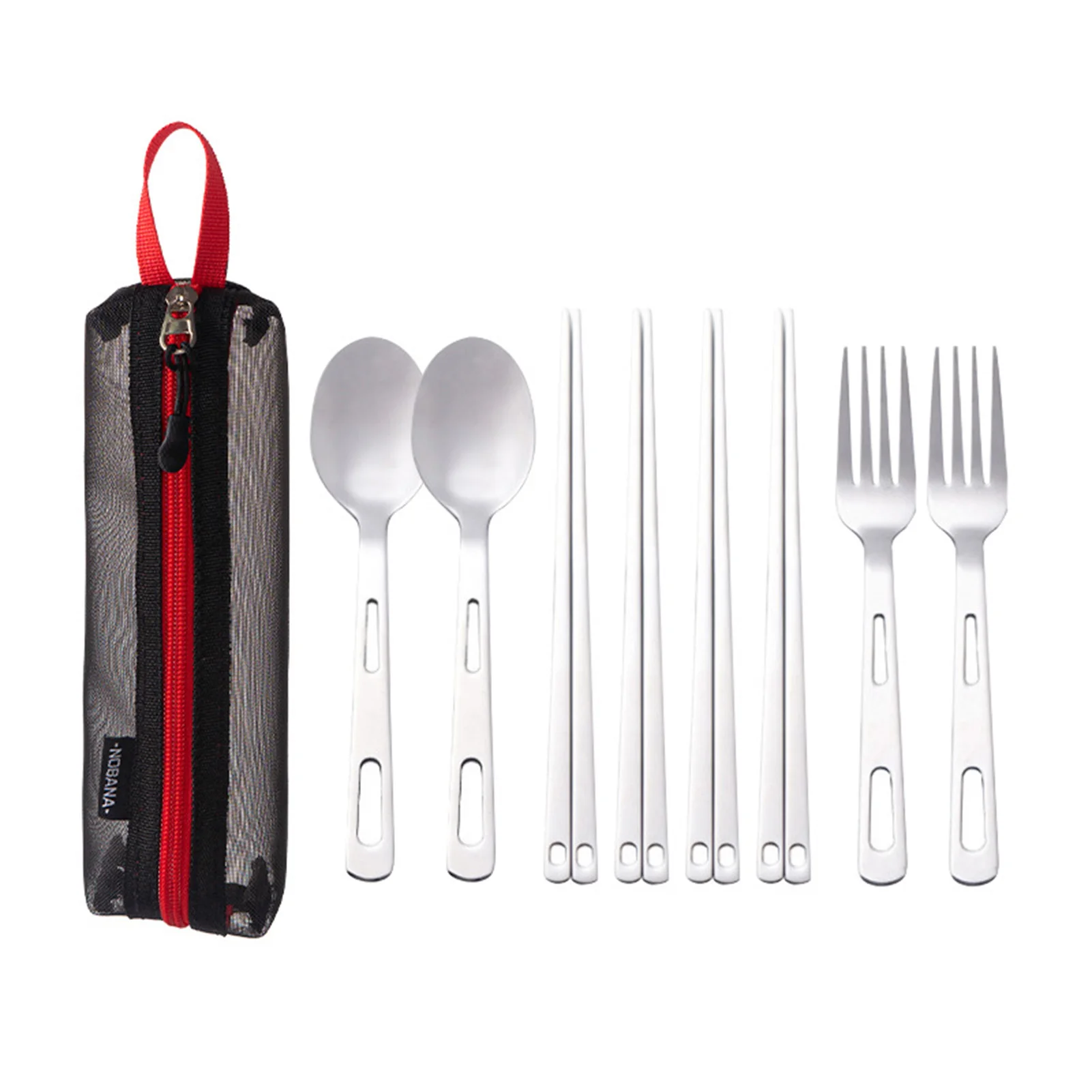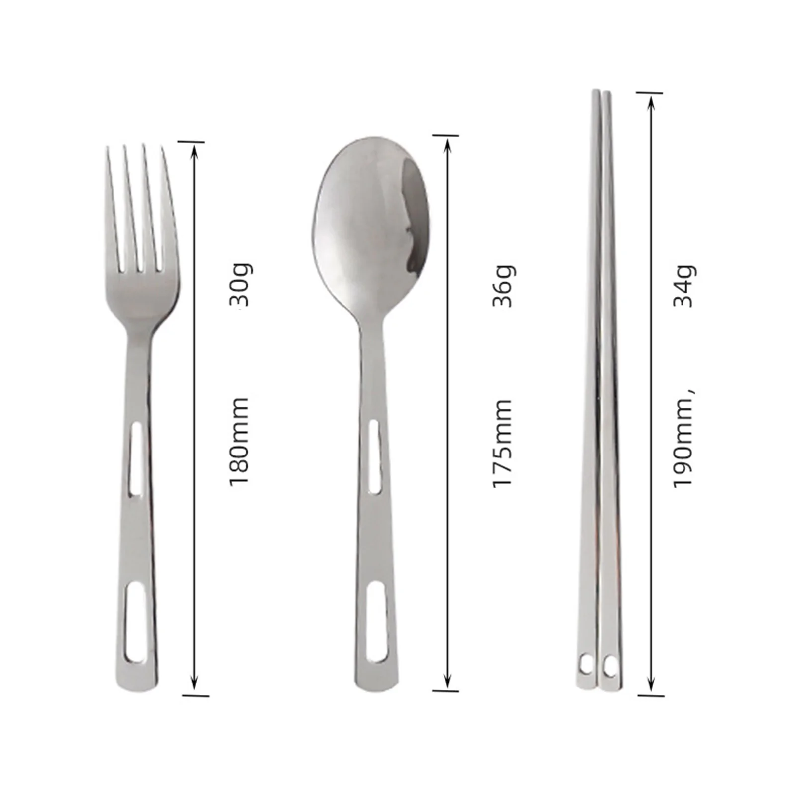 Versátil y conveniente: nuestro juego de cubiertos portátil de acero inoxidable incluye tenedor, cuchara y palillos, lo que lo hace adecuado para una variedad de comidas.El estuche de transporte incluido con diseño de malla mantiene los utensilios organizados y fáciles de transportar, ideal para picnics, campamentos, universidades, escuelas, caminatas y viajes.