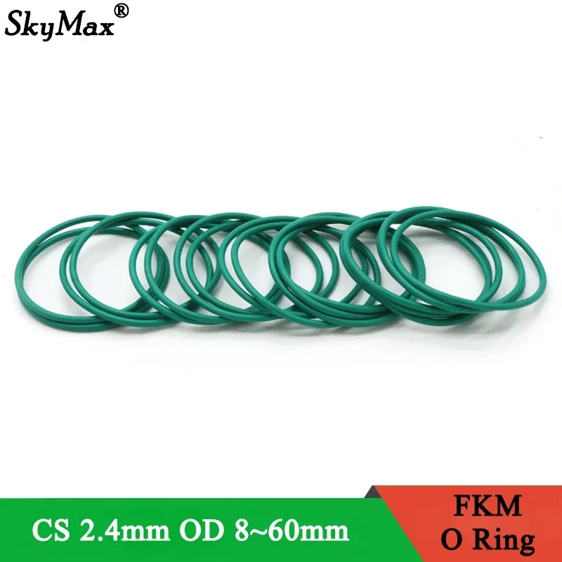 Junta tórica de goma de flúor verde CS 2,4mm OD 8 ~ 60mm FKM, junta de sellado, aislamiento de aceite, resistencia a altas temperaturas, Verde, 10 Uds.