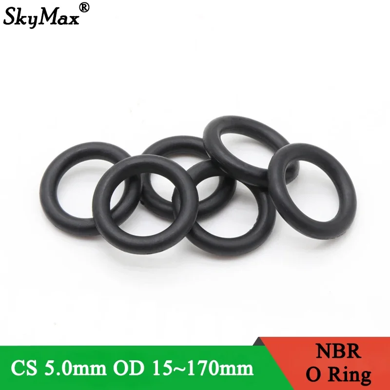 Junta tórica de sellado NBR CS 5mm OD 15 ~ 170mm espaciador de goma de nitrilo butadieno arandela resistente al aceite de forma redonda negra, 10 piezas