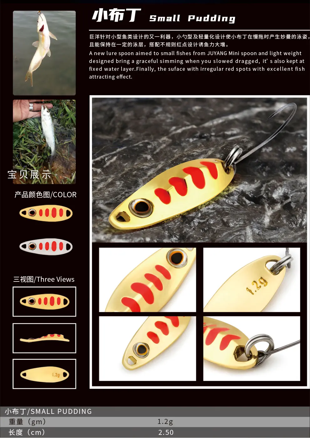 JUYANG-señuelo de pesca con cuchara, 1,2g, señuelo de Metal, cebo duro, anzuelo individual, señuelos, aparejos de pesca
