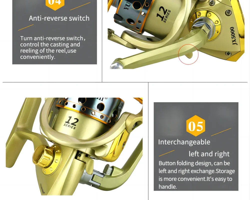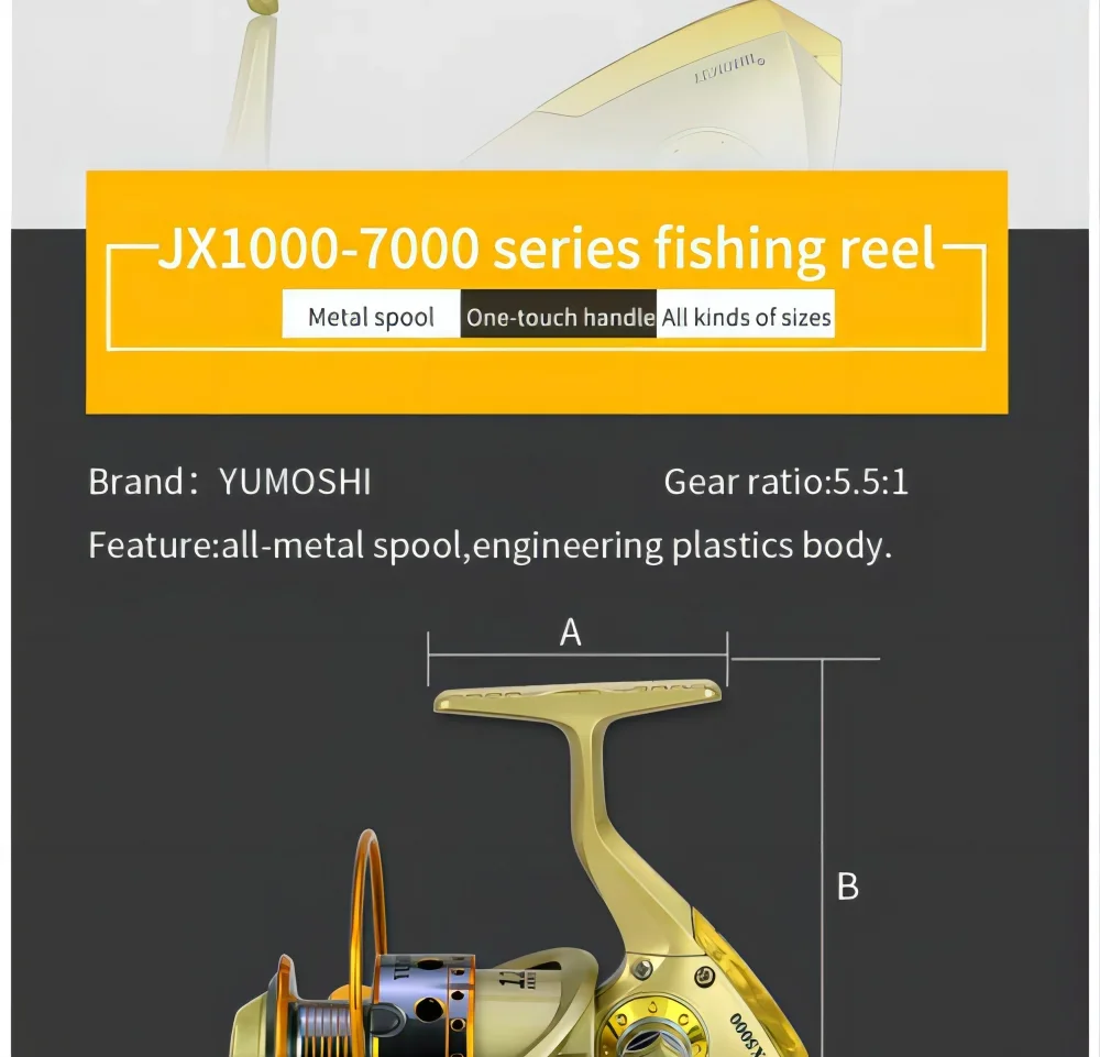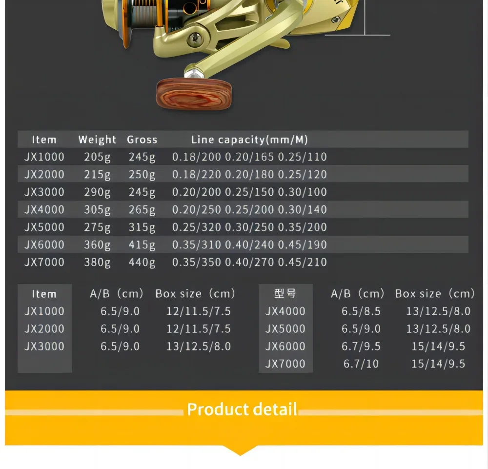 JX-carrete de pesca giratorio serie 7000-1000, accesorios profesionales de pesca de carpa de agua salada y dulce, línea de Metal