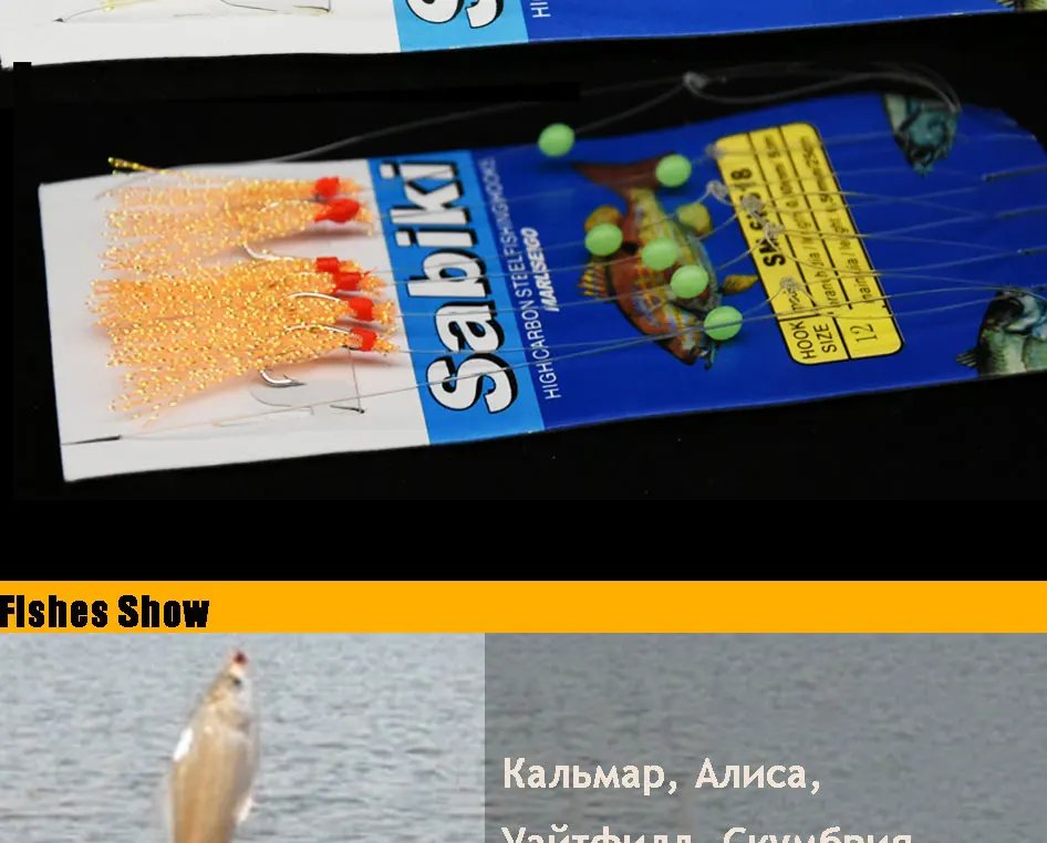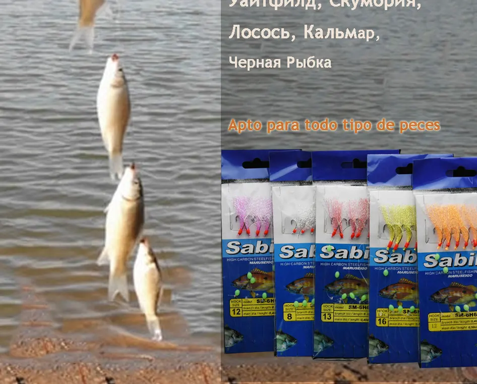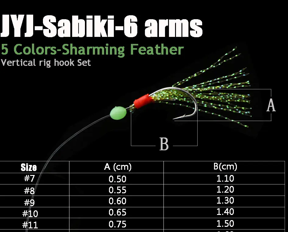 JYJ-1 bolsa de anzuelos para aparejos giratorios, aparejo de cuerda de pesca sabiki con 6 brazos para cebo de salmón y caballa