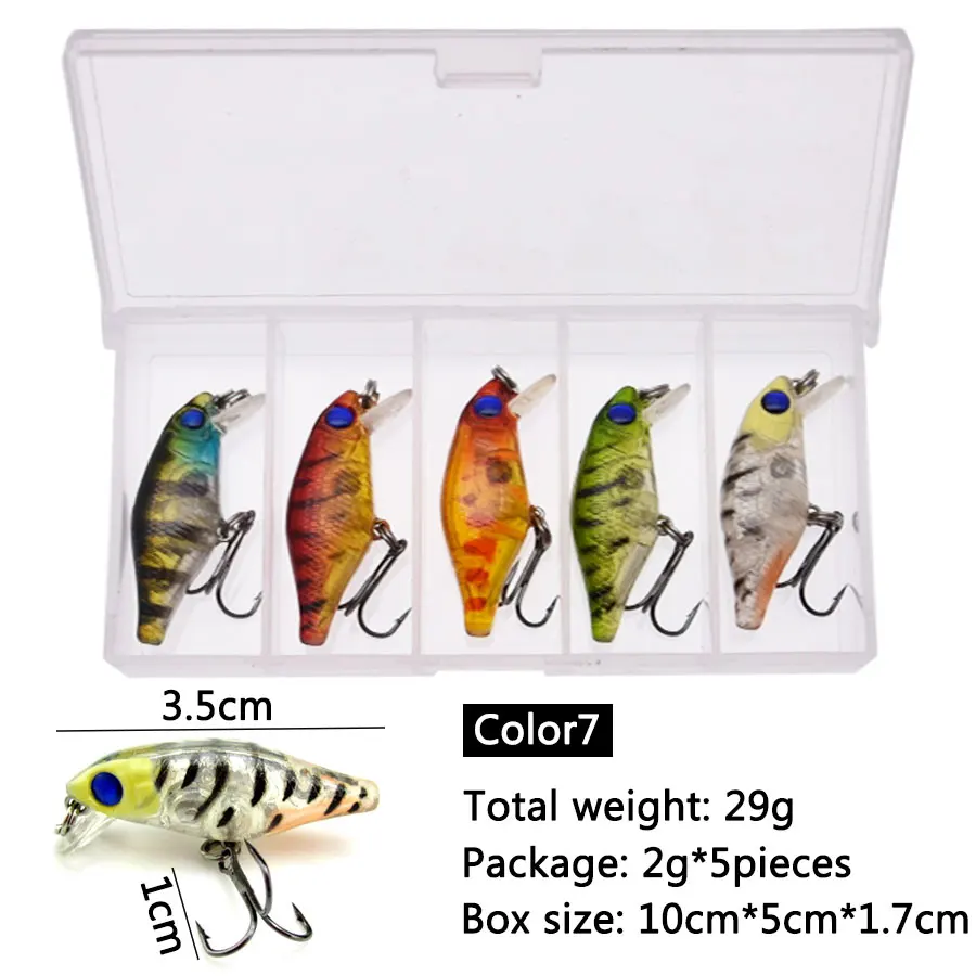 JYJ 1 caja pequeña pesca dura señuelo de plástico ABS superficie de cebo minnow señuelo hundido wobbler para lubina perca equipo de pesca dorada