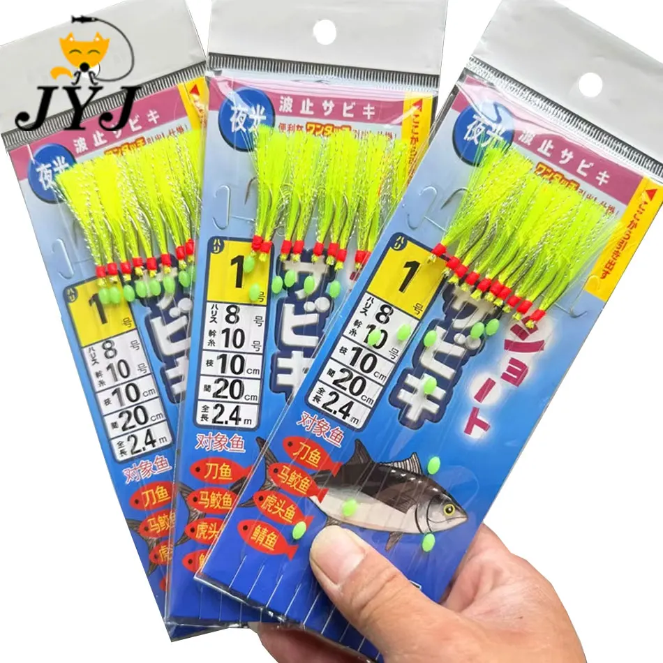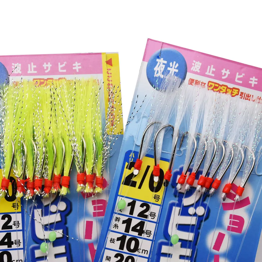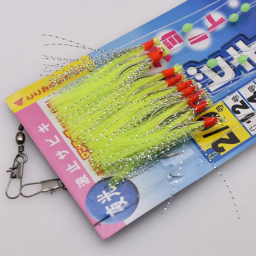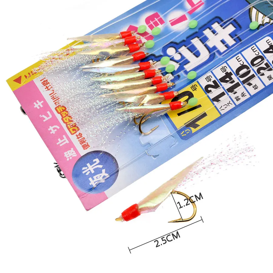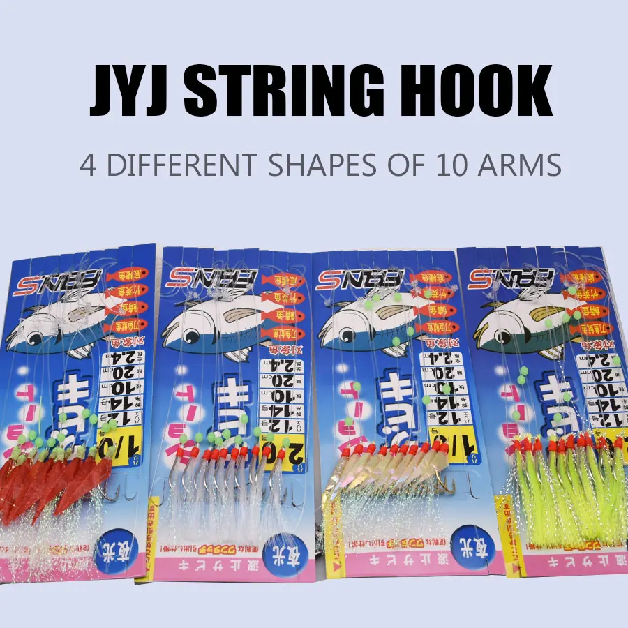 JYJ 10 anzuelos por bolsa, anzuelos de cuerda de pesca sabiki con 10 brazos para salmón y mackcrel, cebo de pesca de agua salada