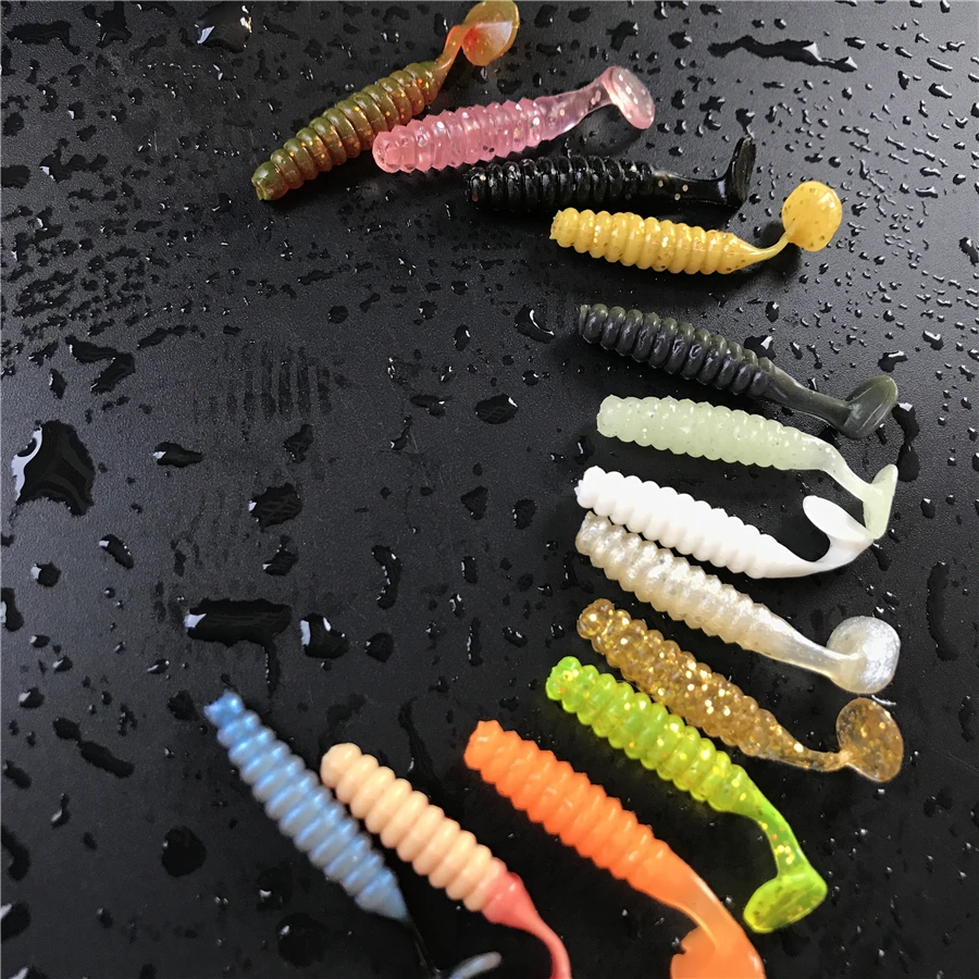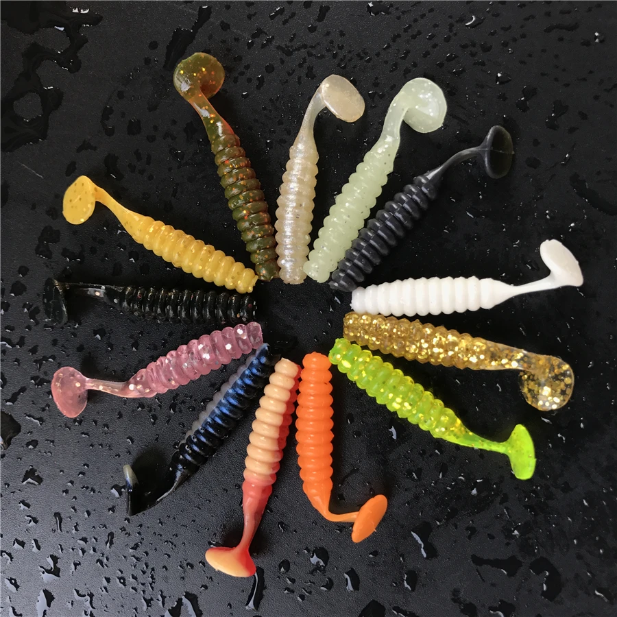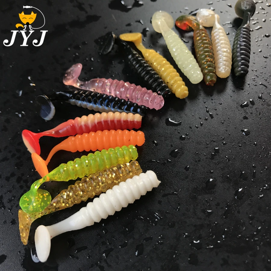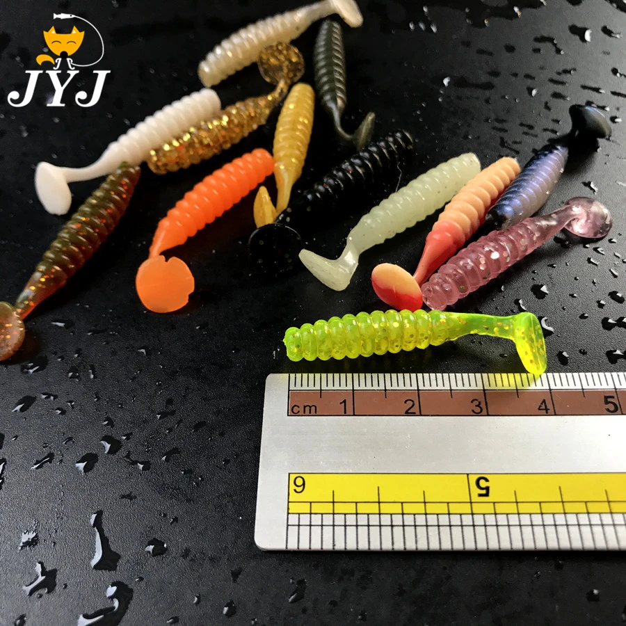 JYJ 10 Uds 4cm 13 colores súper pequeño mini cola de paleta suave Japón cola gusano cebos pesca señuelo larvas aparejos para peces pequeños