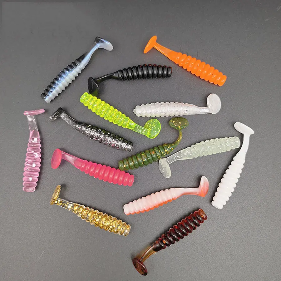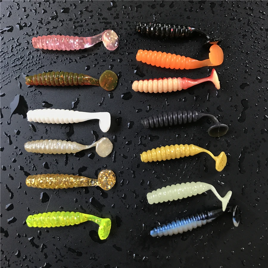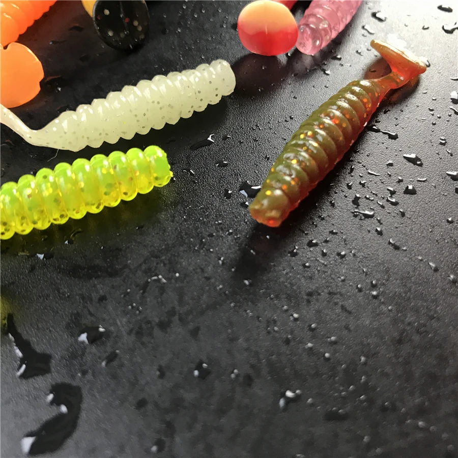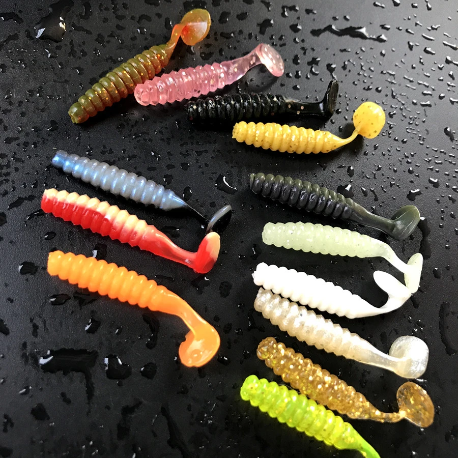 JYJ 10 Uds 4cm 13 colores súper pequeño mini cola de paleta suave Japón cola gusano cebos pesca señuelo larvas aparejos para peces pequeños