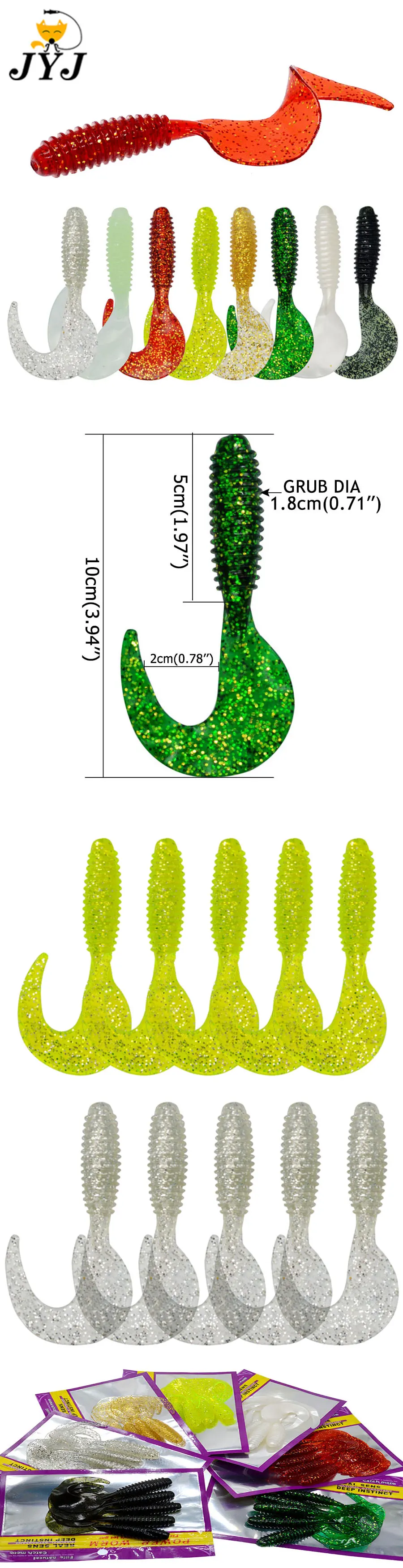 JYJ 10 cm 8,5 g 5 unids/bolsa señuelo artificial suave cebo de gusano grub, cola larga torcida wobbler swimbait da pesca lubina tipo pez señuelo de Lucio