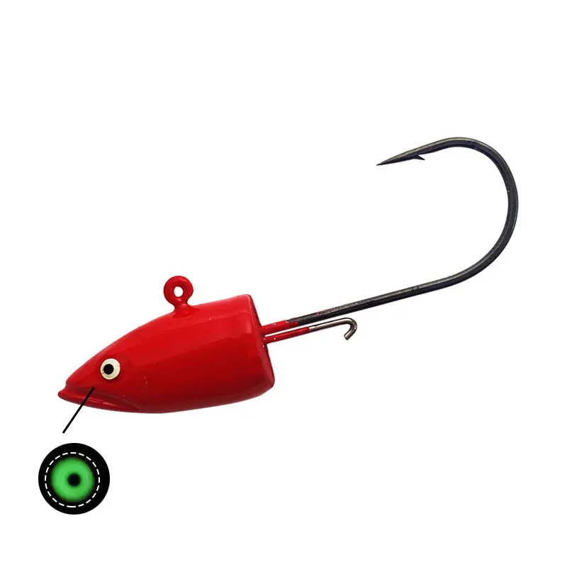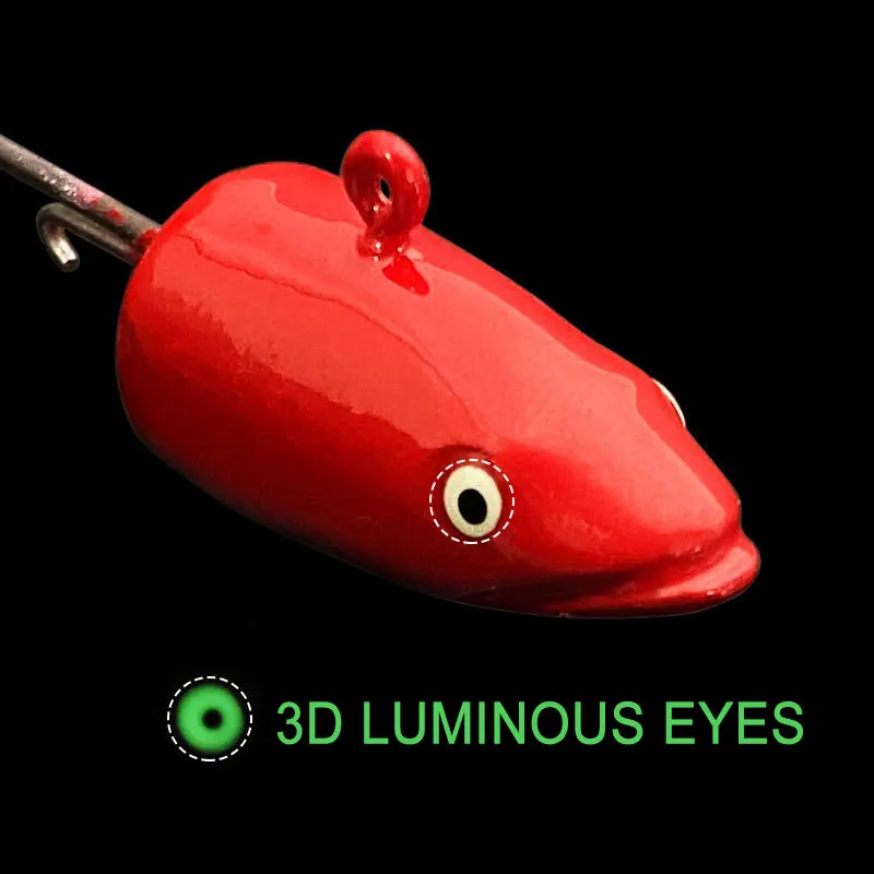 JYJ 1 pieza 14g ojos 3D cabeza de pesca anzuelo de jigging, anzuelo de acero inoxidable Lucio lubina suave gusano aparejos de pesca