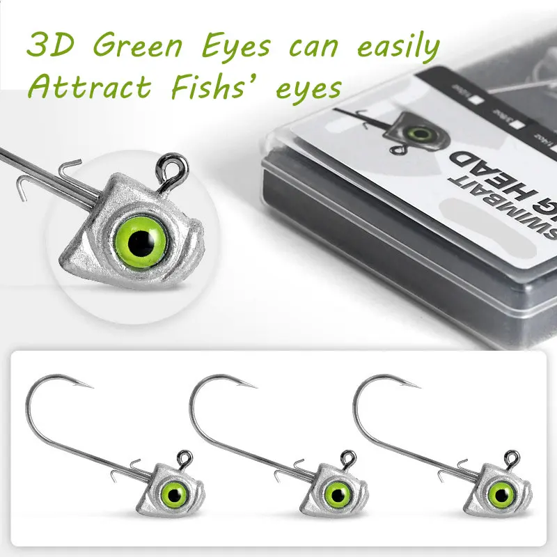 Equipados con ojos en 3D, estos cabezales de plantilla imitan presas reales, realzando su atractivo para los peces.