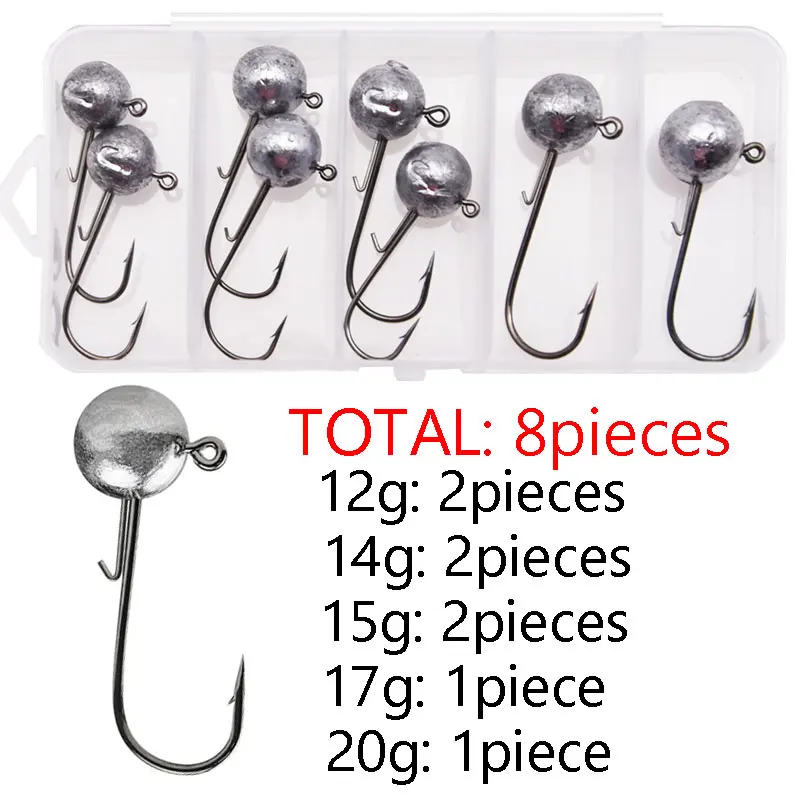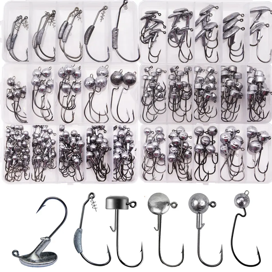 JYJ 1g 2g 3g... 28g todo tipo de anzuelos de cabeza de anzuelo de manivela de pesca, anzuelos de pesca de acero rico en carbono para cebo de señuelo de gusano suave