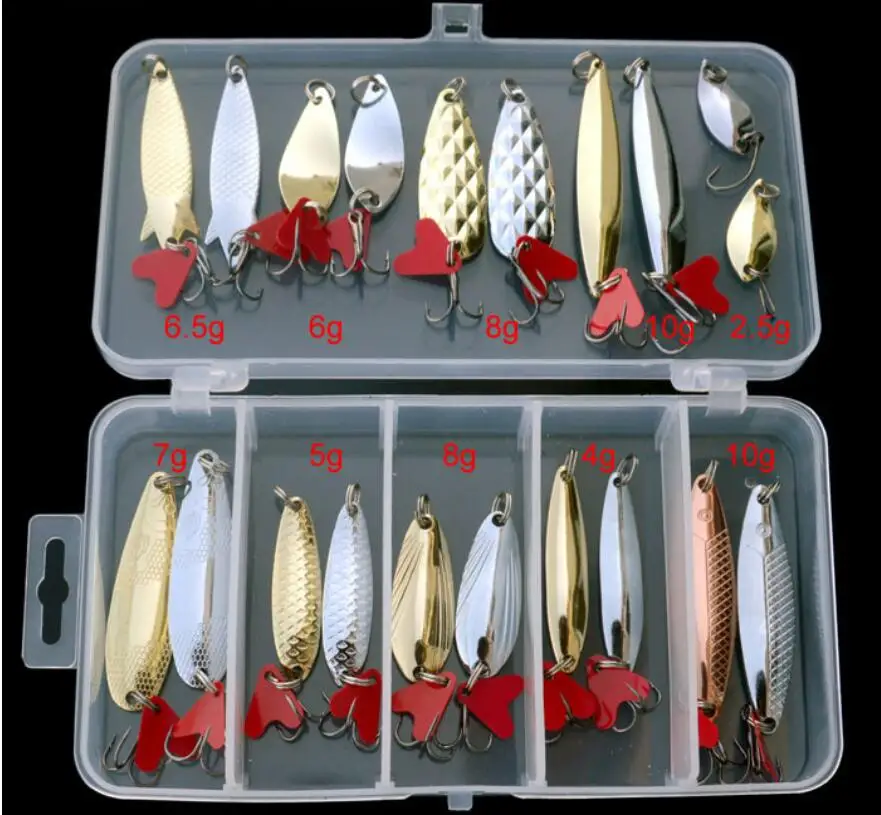 JYJ 20 piezas por caja colorida 2,5g 4g 5g 4,5g 6g 7g 8g 10g cuchara de pesca de metal duro juego de señuelos artificiales walleye trucha cuchara cebos