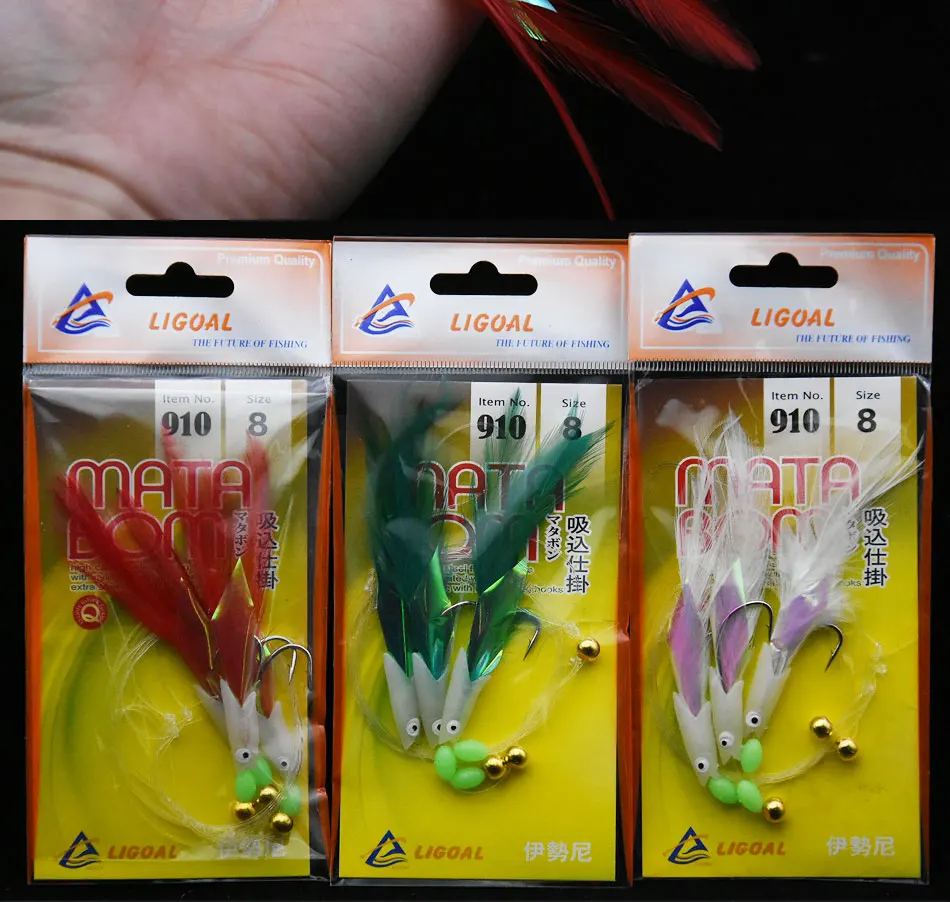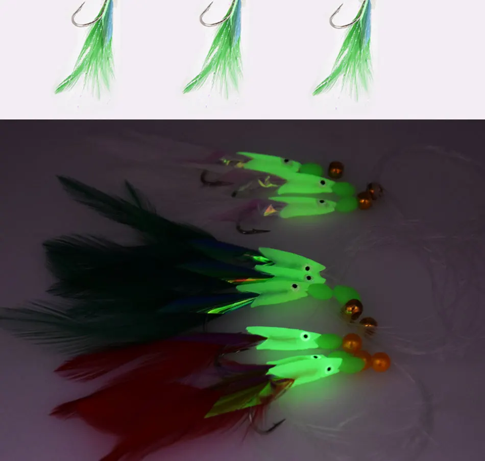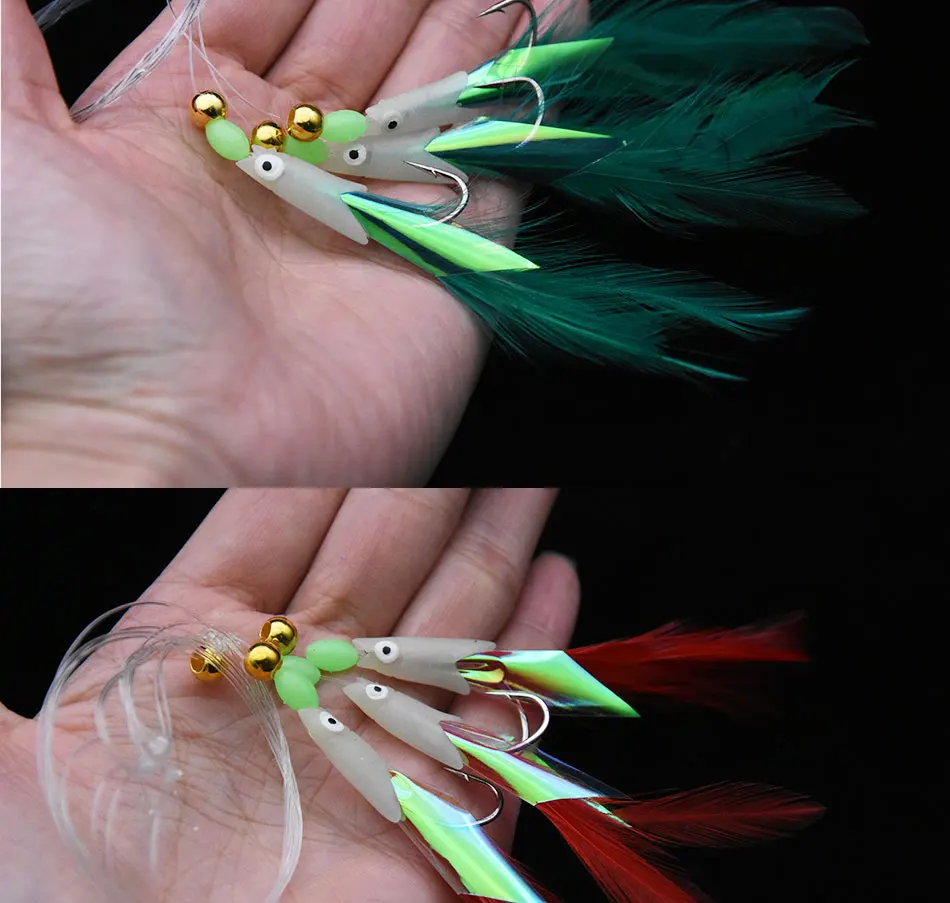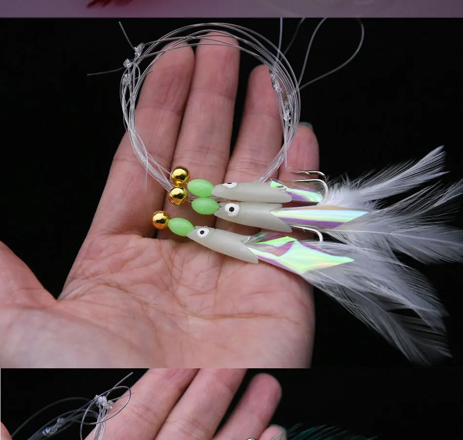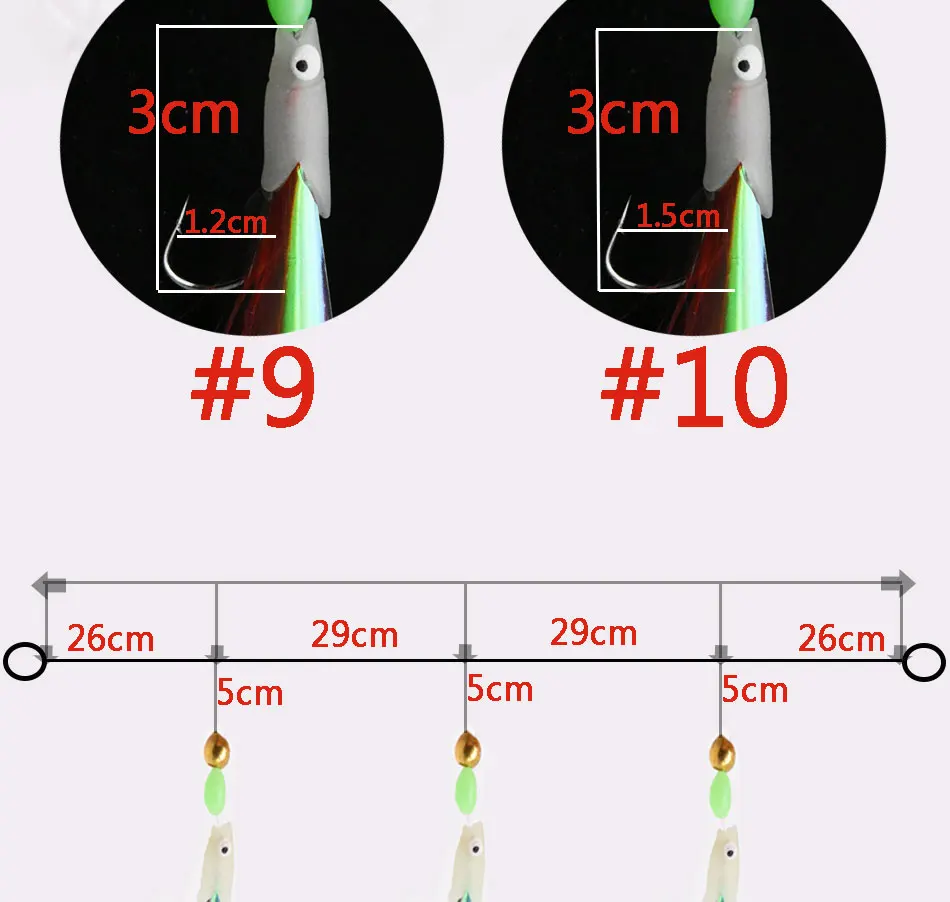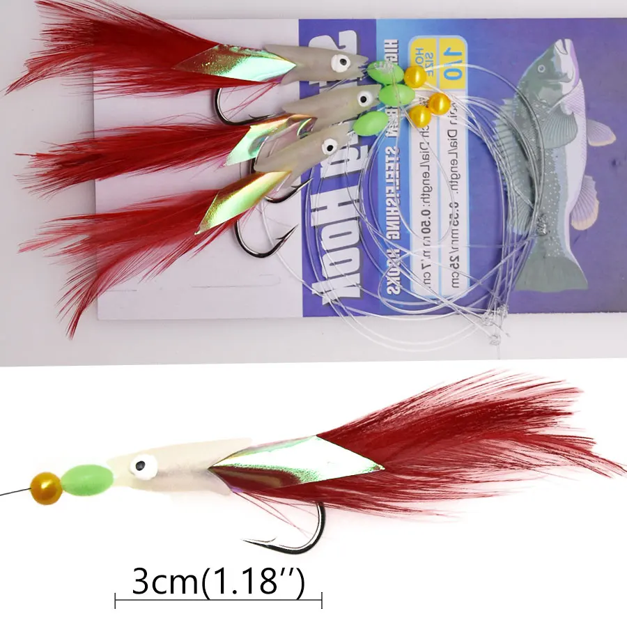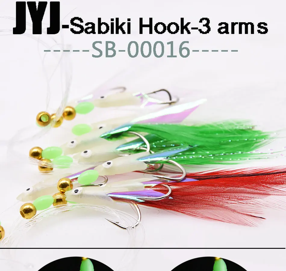 JYJ 3 anzuelos/juego de cabeza de pez luminosa, señuelo de pesca con un solo anzuelo, plantillas de cebo, pesca de gusanos, anzuelos de cuerda sabiki