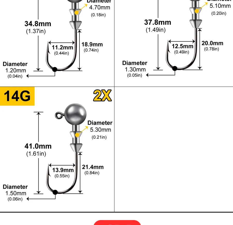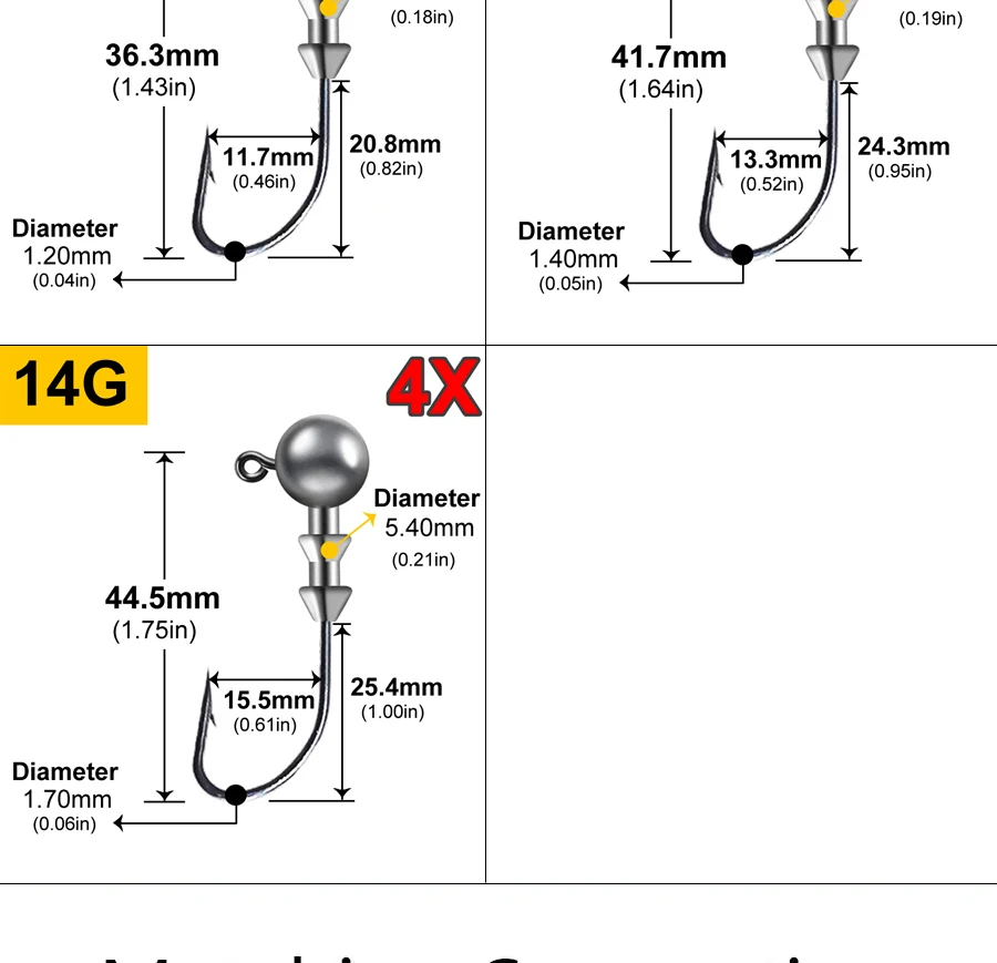 Tamaño del gancho: 3,5 g/5 g/7 g/10 g/14 g