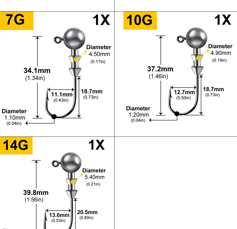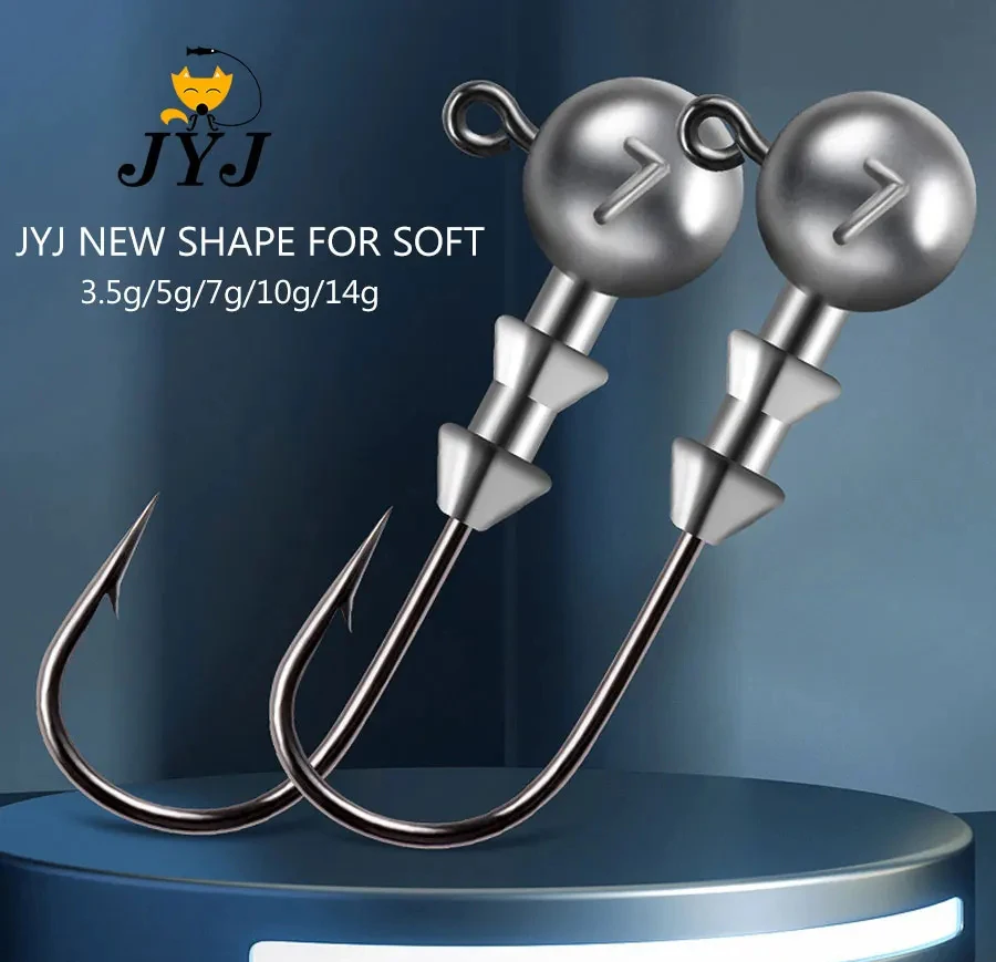 JYJ 3,5 g / 5 g / 7 g / 10 g / 14 g Gancho de cabeza de anzuelo de pesca con hilo de tornillo para anzuelo de gusano de cebo suave, anzuelos de pesca afilados nuevos