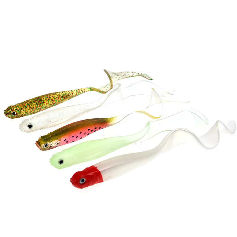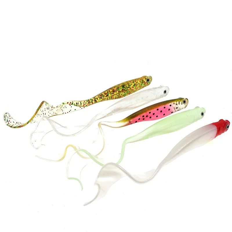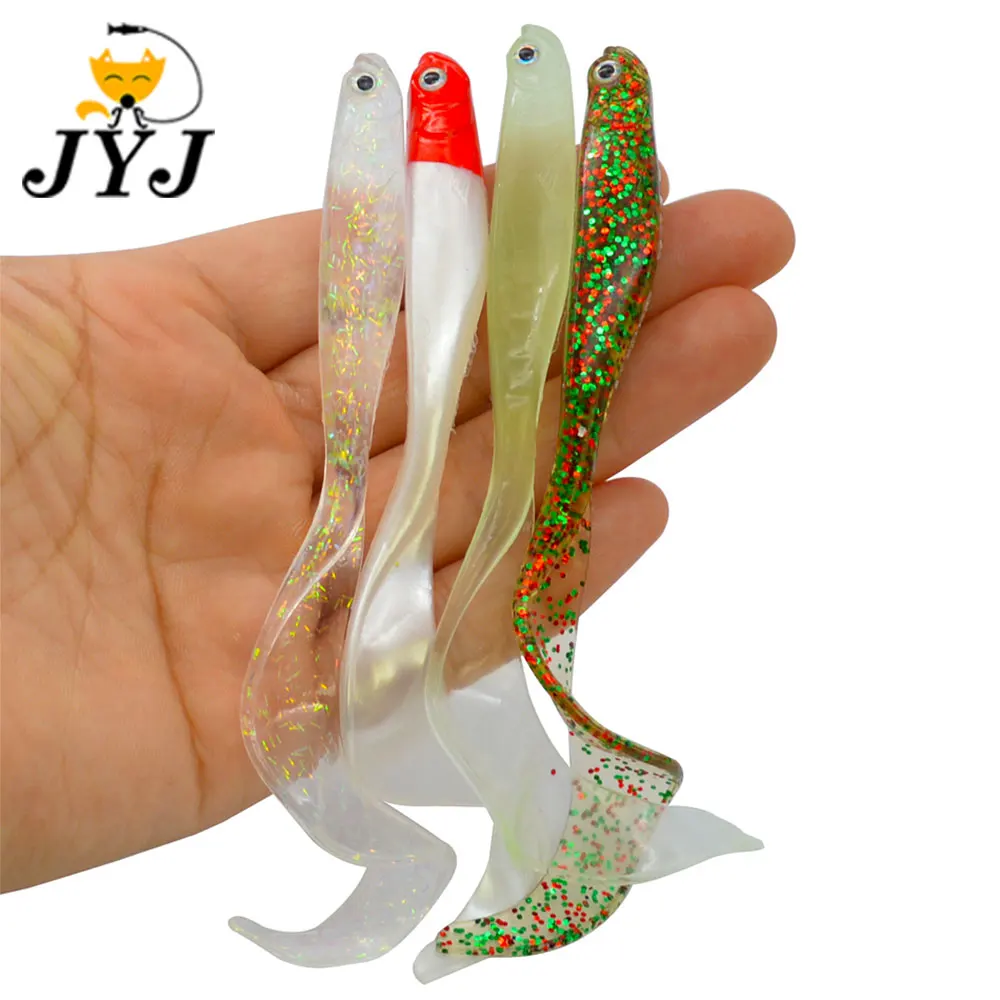 JYJ 4 piezas 10,5 cm 6,5g cebo de señuelo de pesca artificial suave, cola de rollo de señuelo de gusano de sílice suave para pesca